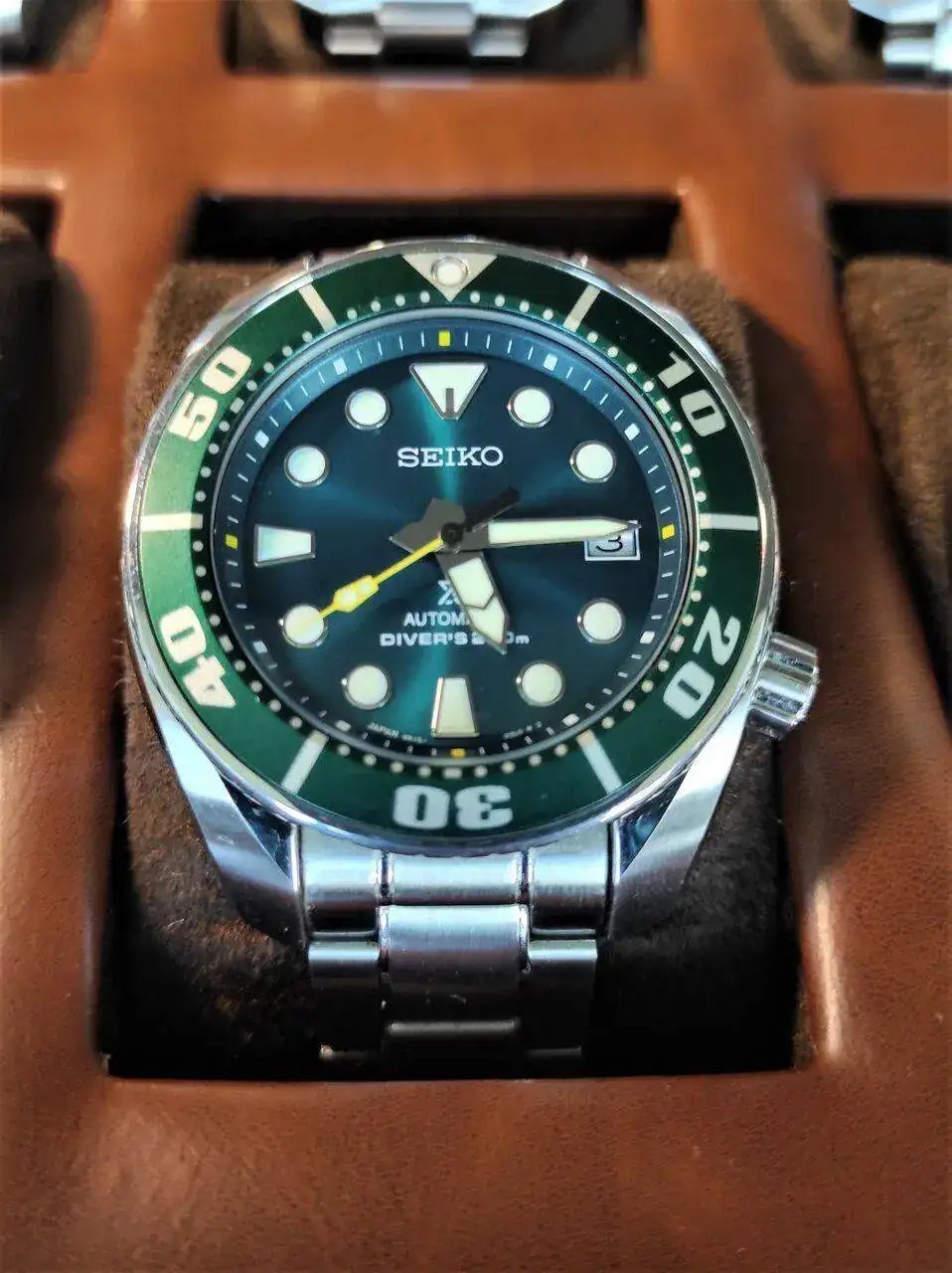 El siguiente es otro modelo icónico de Seiko, el Sumo, en concreto la referencia SZS004 conocida como el Sumo Emerald debido a su bonito dial en color verde esmeralda. Se trata de una versión exclusiva para el mercado japonés que conseguí hace ya unos años a través del conocido importador SoloJapan. Monta un calibre 6r15.