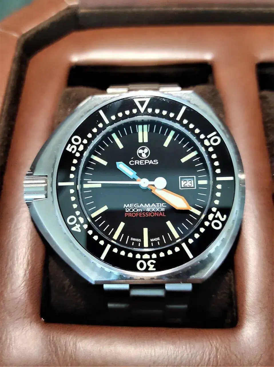 Vamos con el encargado de representar a las micromarcas, una parcela con la que he disfrutado mucho a lo largo de todos estos años por su capacidad de salirse algo más de los diseños habituales. En este caso se trata del Crepas Megamatic, que homenajea (o copia, según se prefiera), a un prototipo de Omega que no llegó a salir al mercado en la década de los 70. Un diseño diferente que me gusta mucho. Monta el archiconocido movimiento ETA2824