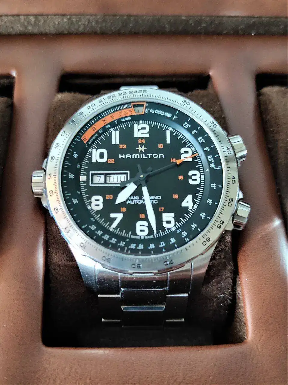 Entramos ya en el terreno de las marcas más tradicionales de la mano del Hamilton Khaki X-Wind Day Date, un reloj contundente con la interpretación que hace Hamilton de un reloj de estética pilot. Calibre H30, que es como denomina Hamilton al Powermatic con 80 horas de reserva. Otro flechazo producto de la siempre peligrosa manía de mirar en el FCV.