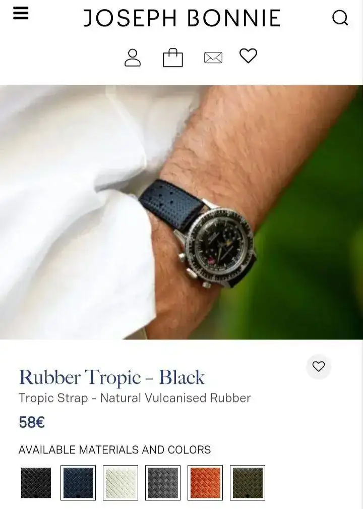 Bueeeeno, pues tras esa conversación de yo conmigo mismo y como os podéis imaginar, acabé buscando una Tropic para el Longines, como he buscado calidad han quedado automáticamente descartadas las de Aliexpress y plataformas similares, y no es que en Aliexpress no se pueda encontrar una buena correa de caucho pero...