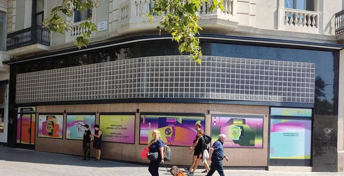 En este local estuvo mucho años la joyería Roca, tenían expuestos joyas con diamantes en torsos de terciopelo negro, era espectacular y digno de ver, también vendían Rolex. Hace relativamente pocos años abrió una Rolex boutique de Tous y ahora que se ha quedado el local vacío va ha abrir próximamente una tienda de relojes de plástico Swatch.