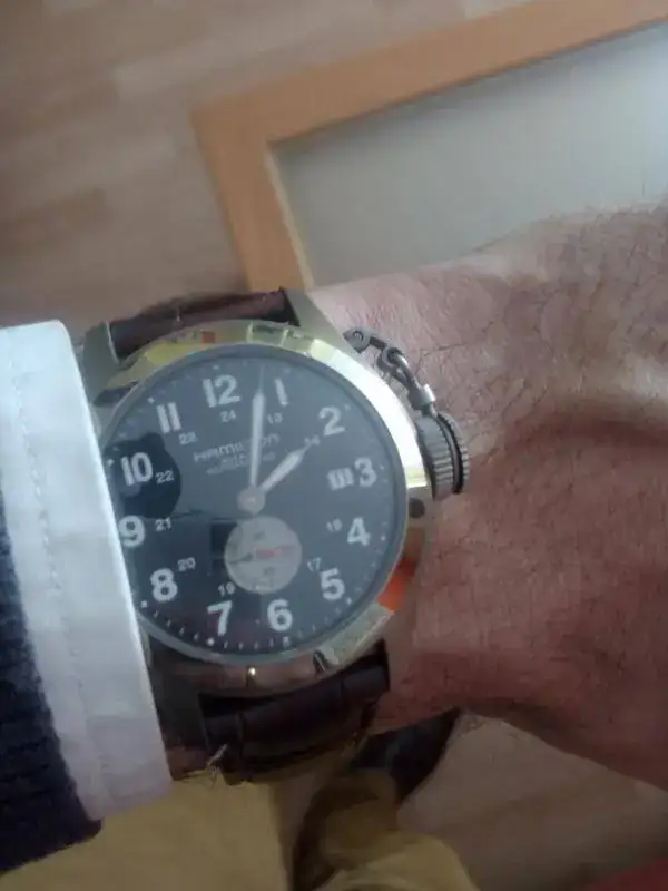 Vamos con el Hami "rana" de titanio, cómodo y elegante, lo compré hace poco a un compañero del foro y hoy había que colocárselo con jersey y camisa, a ver si superaba la prueba. El titanio es cálido, suena a canción de Joy Division, pero es así ;-).