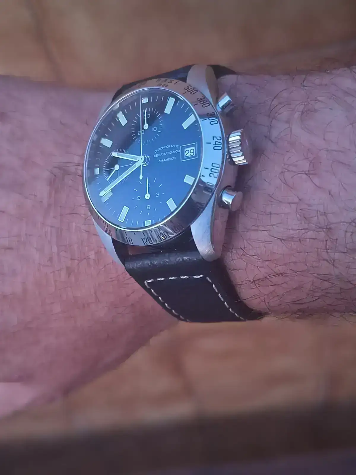 Muchas gracias compañero, me alegro que te guste 😉, hoy lo llevé con correa de pielQué belleza y cómo conjunta el brazalete. Espectacular todo él. Enhorabuena por esta pieza.
