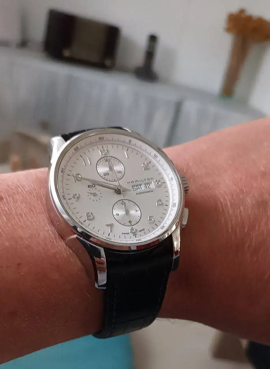 Precioso, elegante pero con un toque deportivo, una correa tipo rally con pespunte en plata tiene que quedarle muy bien también 👍Bueno, vistos los fantásticos cronos que el personal luce por aquí, voy a contribuir con mi modesta aportación al hilo con este Hami.