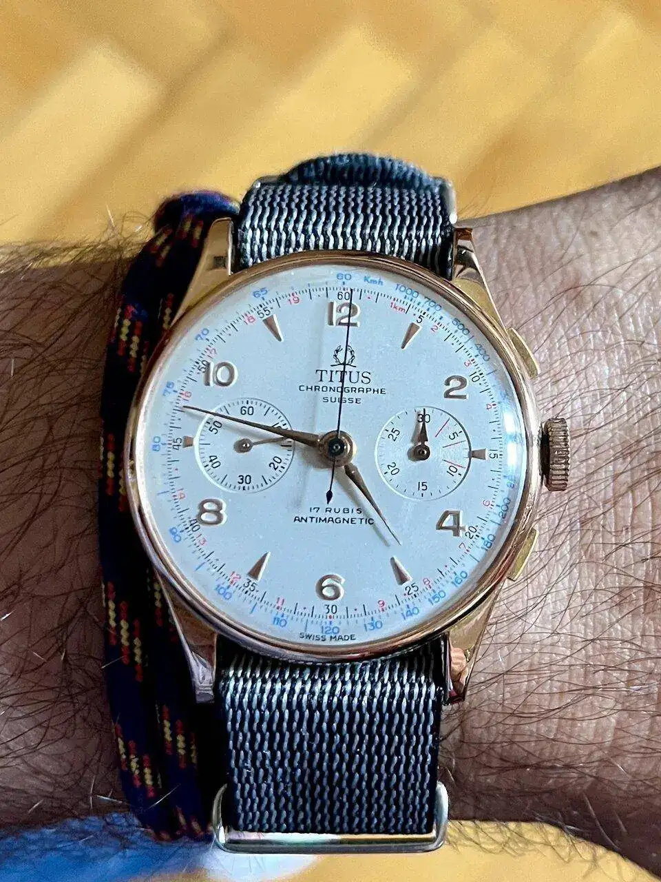 Muchas gracias compañero ; tiene una historia el crono , hace poco volvió del taller de mi relojero q es el mejor y más severo censor de mis relojes y dictaminó lo mucho q le gusta ; no es persona q se " case " con nadie....