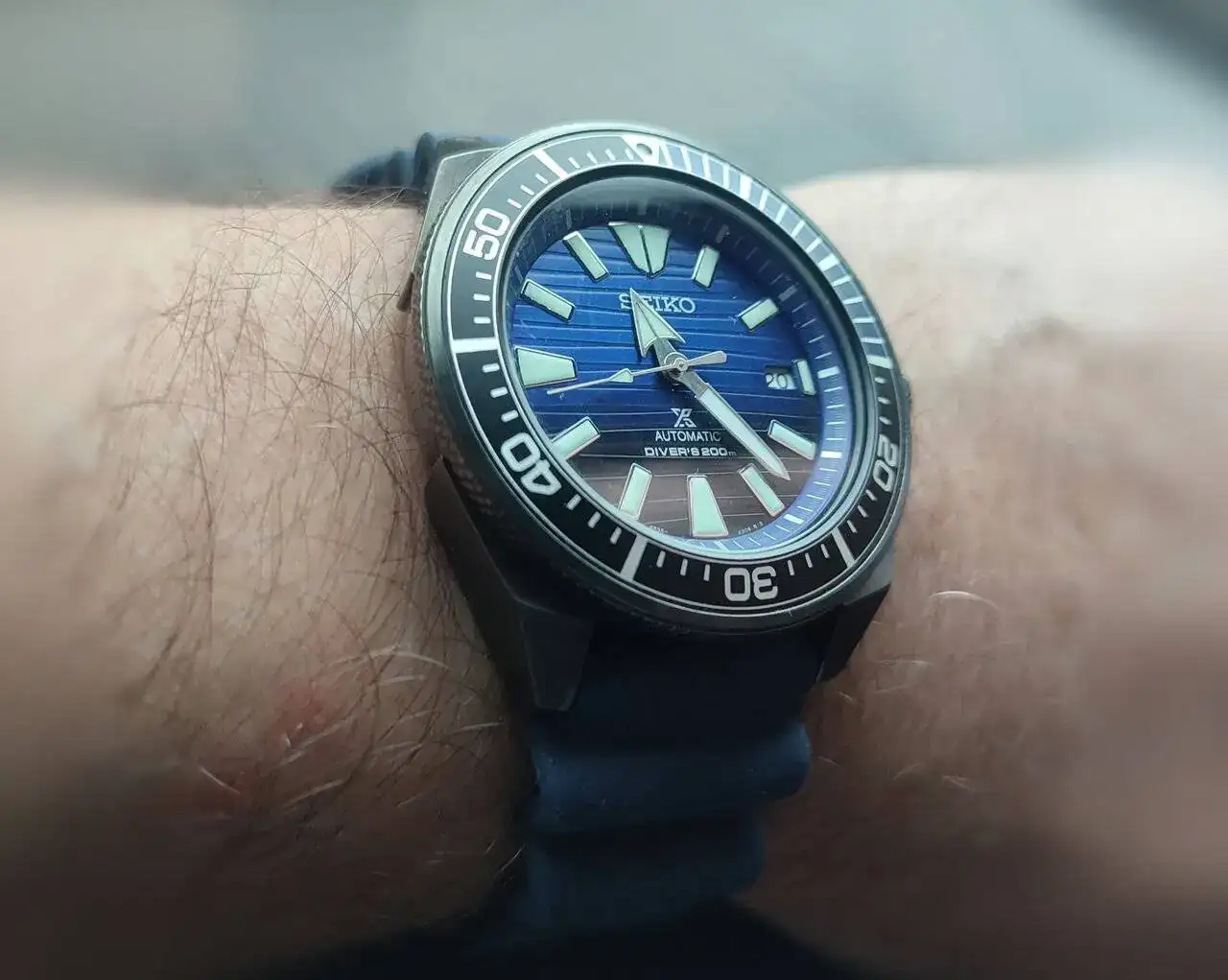 El reloj que estoy llevando este mes es mi breitling Seawolf en titanio. Un monstruo de 3000m, una verdadera maravilla en comodidad, legibilidad y dureza. El caucho con el sistema de microajuste interno de breitling es sensacional.