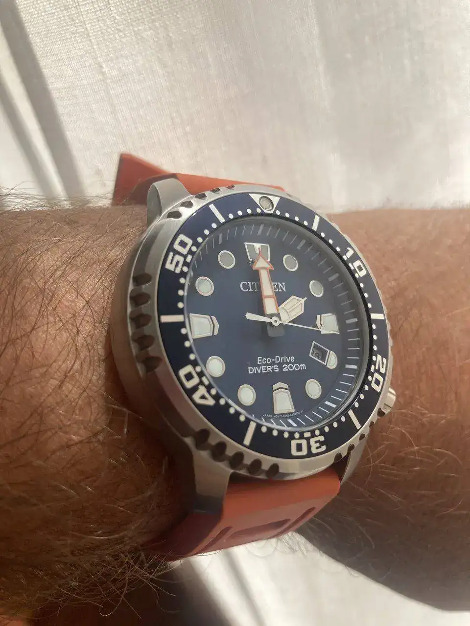 El reloj que estoy llevando este mes es mi breitling Seawolf en titanio. Un monstruo de 3000m, una verdadera maravilla en comodidad, legibilidad y dureza. El caucho con el sistema de microajuste interno de breitling es sensacional.