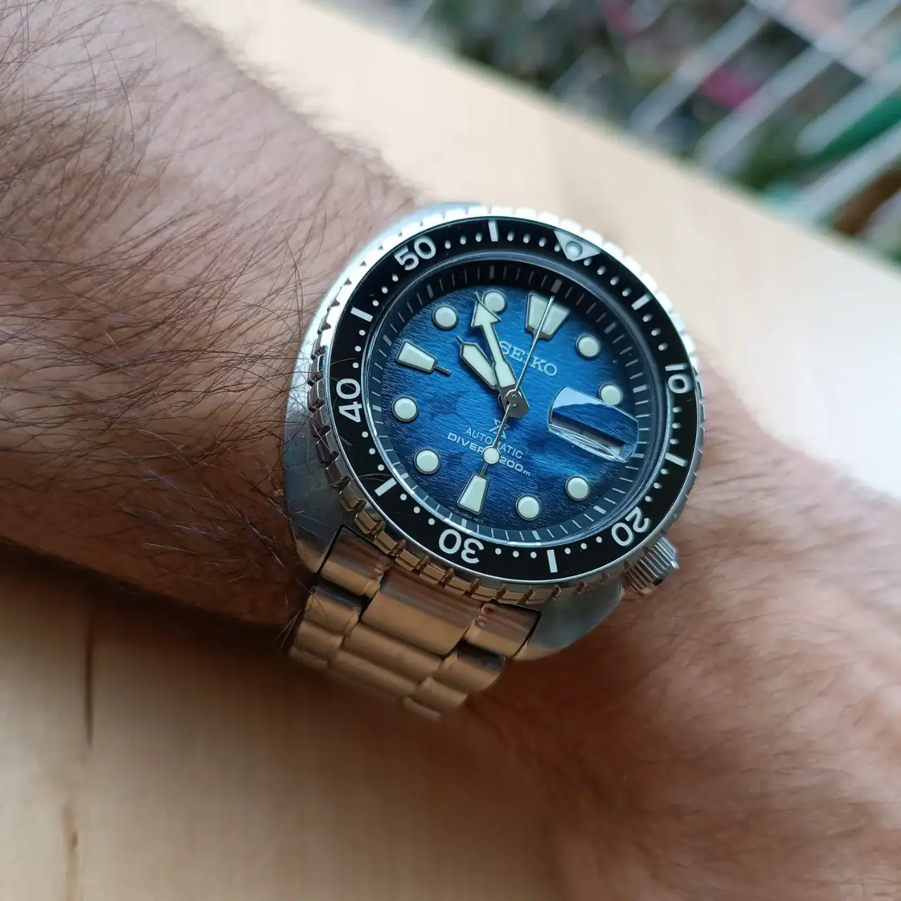 Repito con este; ya de madrugada mostraba sus tonalidades de esfera dependiendo de la luz.