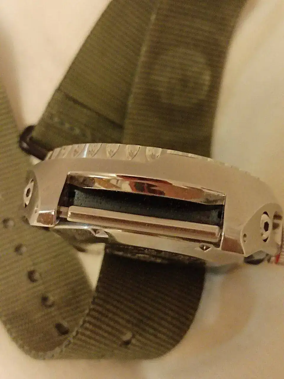 Respuesta: pues porque es un viejo truco aprendido de escuela relojera. De esta manera se "autolimpia" la caja con la mini holgura oscilante del nylon al llevarlo así en la muñeca. Esa mugre, mezcla de polvo y sudor que se va acumulando en los bordes de las asas y spring bars, clavillos en castellano. Me explico: es el viejo (y siempre efectivo) truco de cuando éramos pequeños y andábamos en bicicleta. Los que peinamos canas y superamos los 5O año recordaremos aquellas mechas de yesquero (que aún se venden en ciertos Estancos, recordad su color naranja que se vendía al corte por metros) del yesquero del abuelo. Entonces la atábamos en el buje de nuestras bicis 🚲 y sus dos ejes siempre estaban relucientes, brillantes, "autolimpiándose" silenciosamente por frotación, siendo la envidia de nuestra camarilla bicivolante.