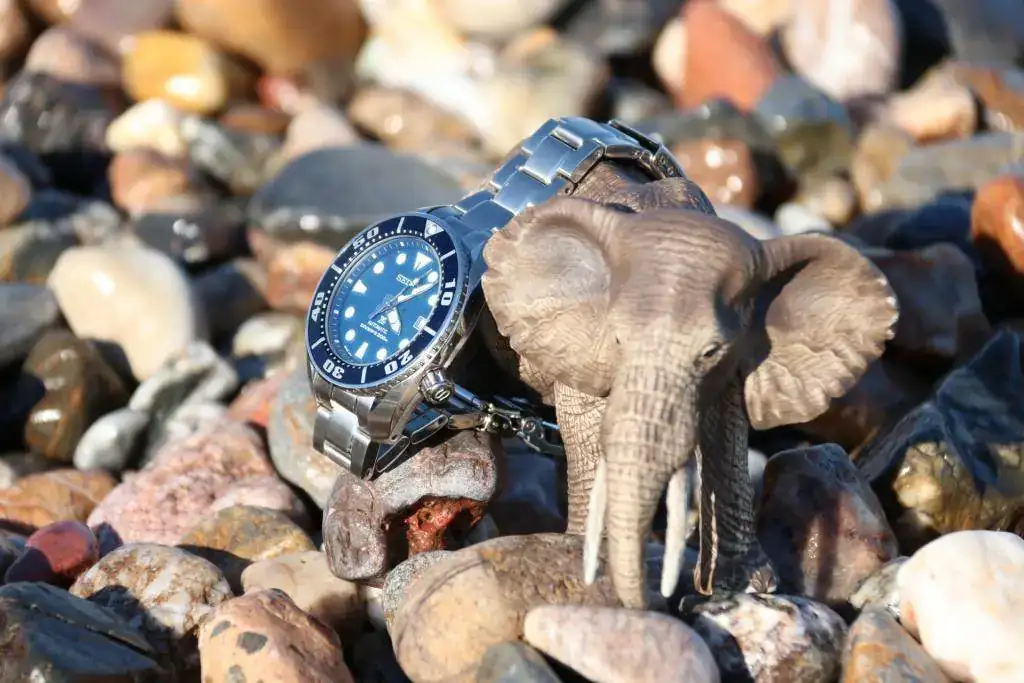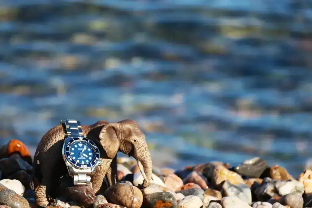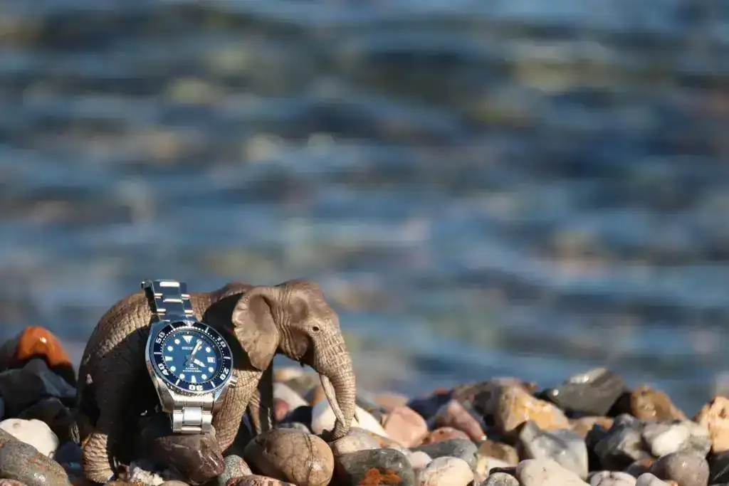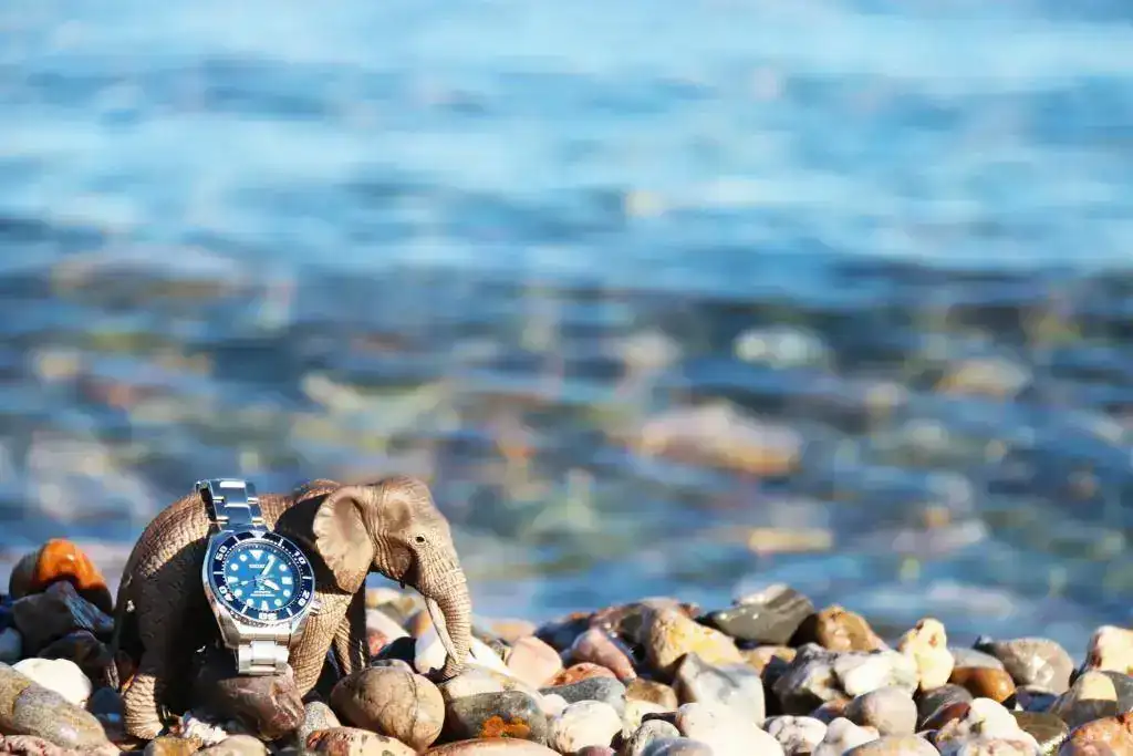 Con el Seiko Sumo en la orilla del mar