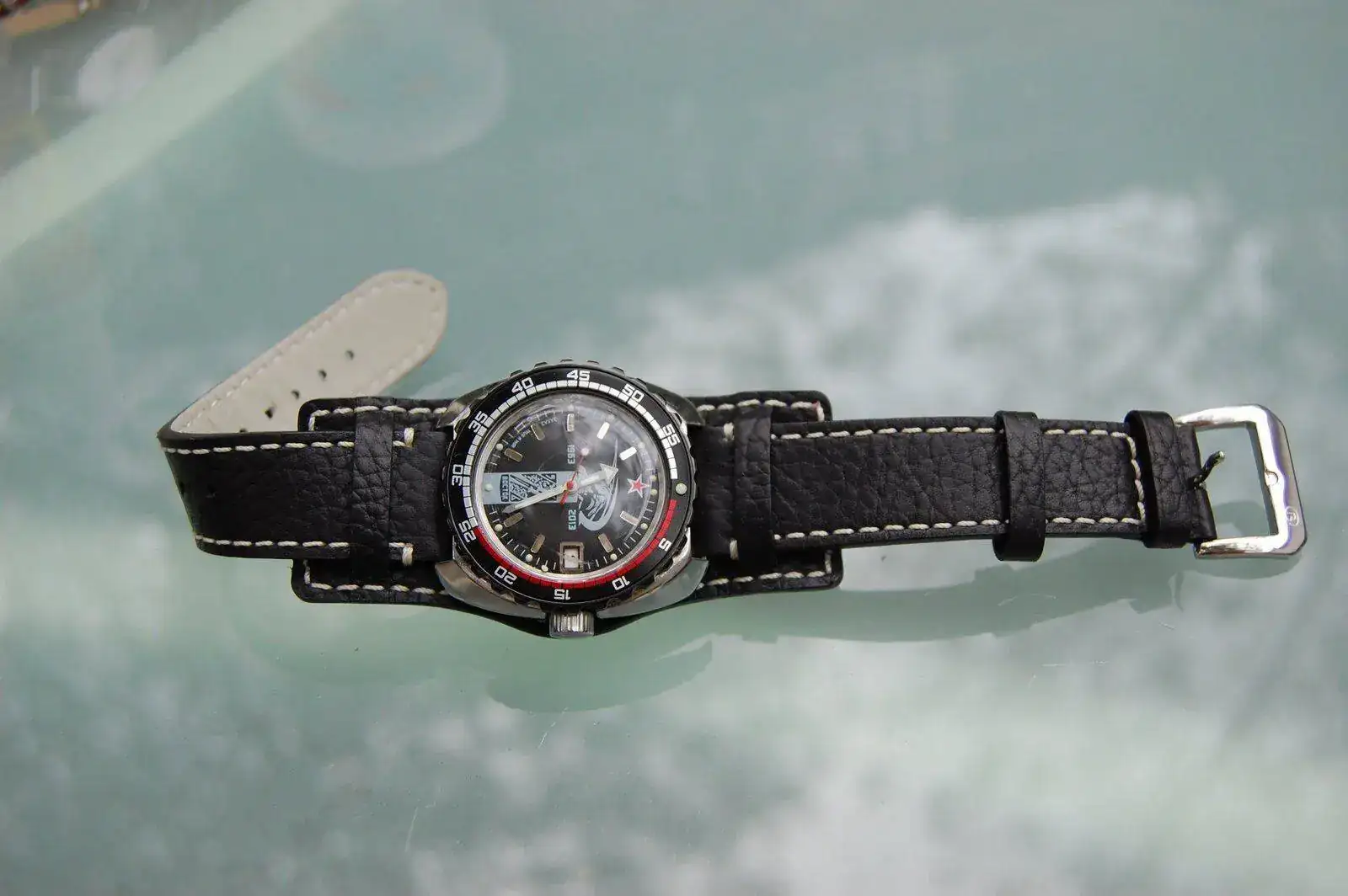 Gracias, es de Meranom, en cuero, y a solo 12€, y le sienta bien a muchos relojes que he probado. La tienen en 18mm y 22mm.Que bien le queda esa correa !!!
