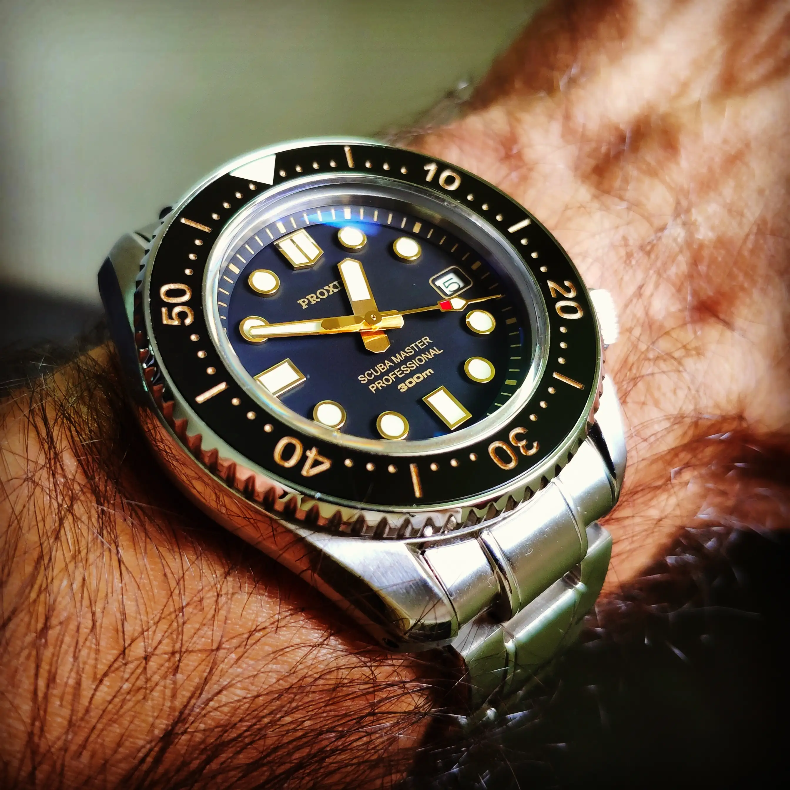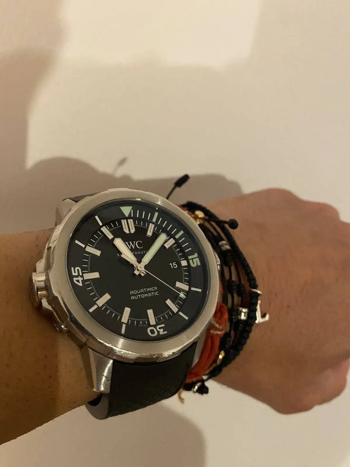 Pues el diver que llevo ahora mismo… mi IWC. aquatimer, que és un reloj que me encanta, y aún siendo 42mm y pesado, es extremadamente comodo! Un saludo!!!