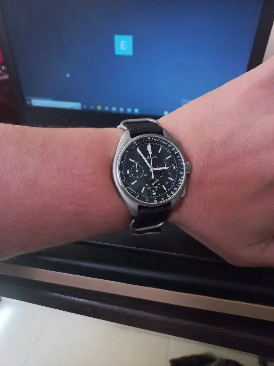 Por detras fecha de la misión con el característico diapazón de bulova.