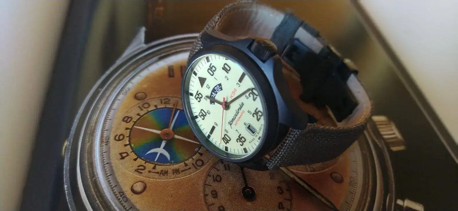 Por lo demás es un relojazo con todo lo que ya sabemos de Vostok. La estética me encanta, el pvd negro con el color de la esfera y la correa verde van genial.