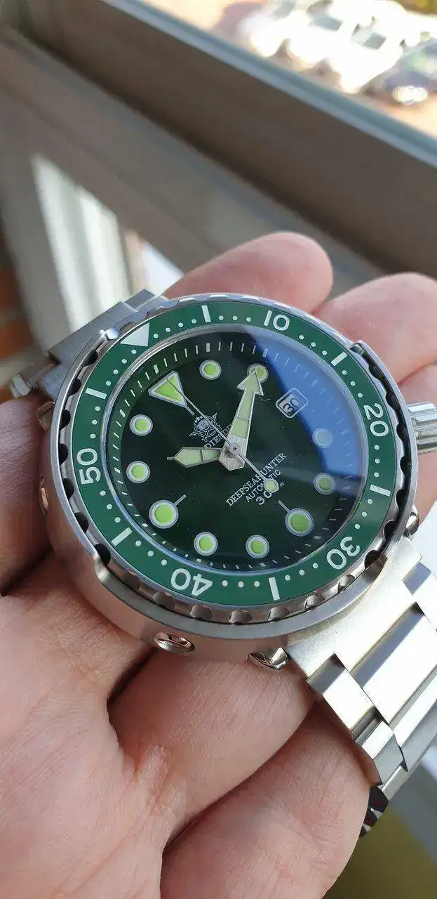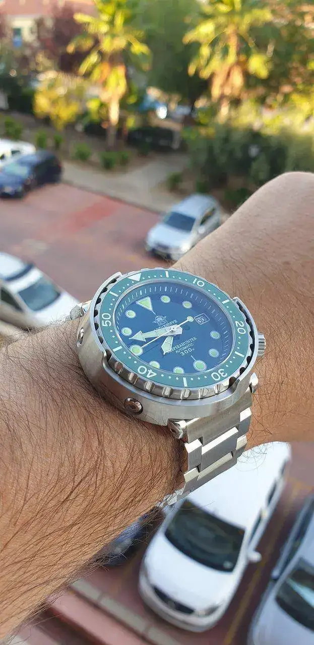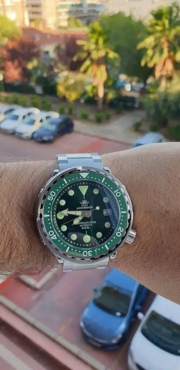 Yo estoy esperando el mio, a ver cuando llegaBueno pues...esta tarde me han traído mi Addiesdive Tuna verde y acabo de abrirlo. Es increíble, precioso, mucho mejor que en las fotos, en ningún momento imaginaría que ha costado 49 euros. Mencionar también que, aunque el modelo es contundente, ajusta perfectamente en mis 16.5 cm de muñeca por la corta distancia entre asas. Como ya todos conocemos la dotación, dejo por aquí un par de fotos rápidas para que lo veais, espero que os guste!
