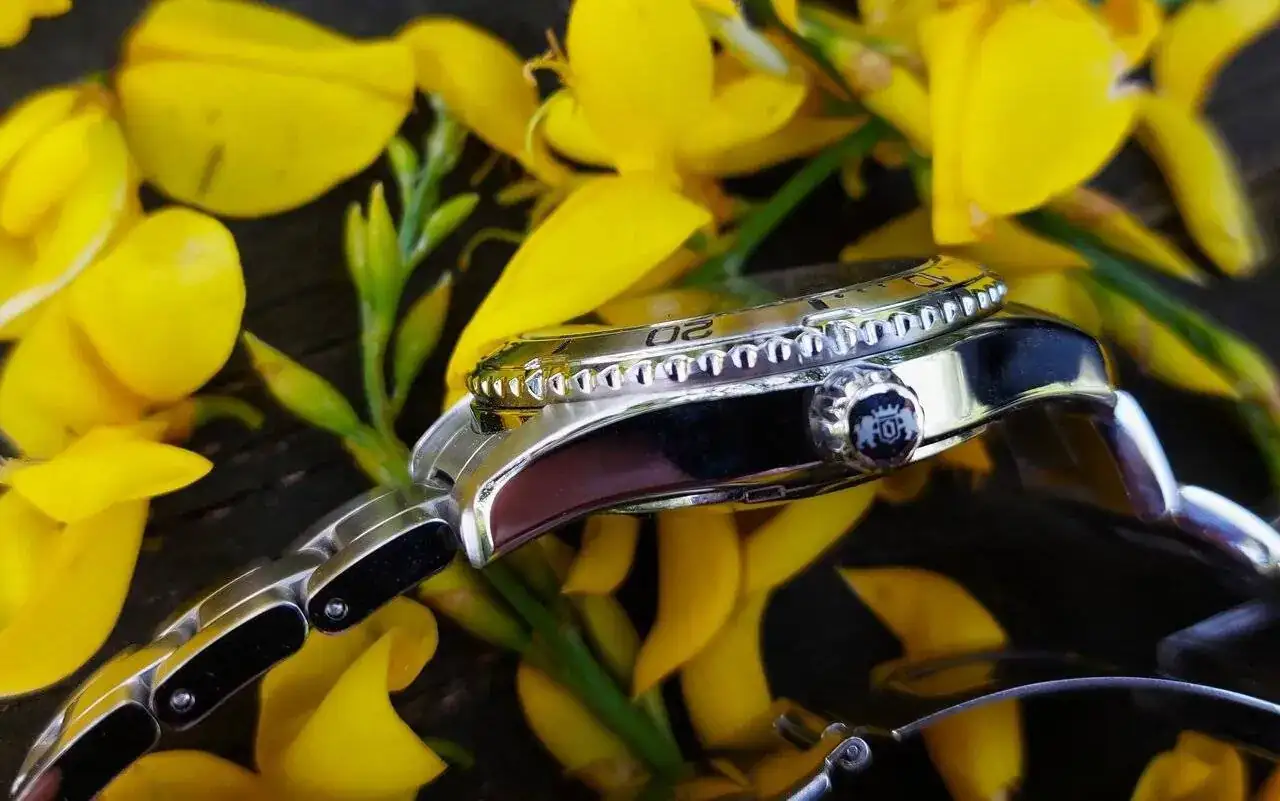 Por lo que este reloj tiene un aspecto deportivo, incluso un tanto elegante que pienso que el fabricante ha buscado intencionadamente en su diseño, saliéndose de los parámetros habituales de sus buceadores.