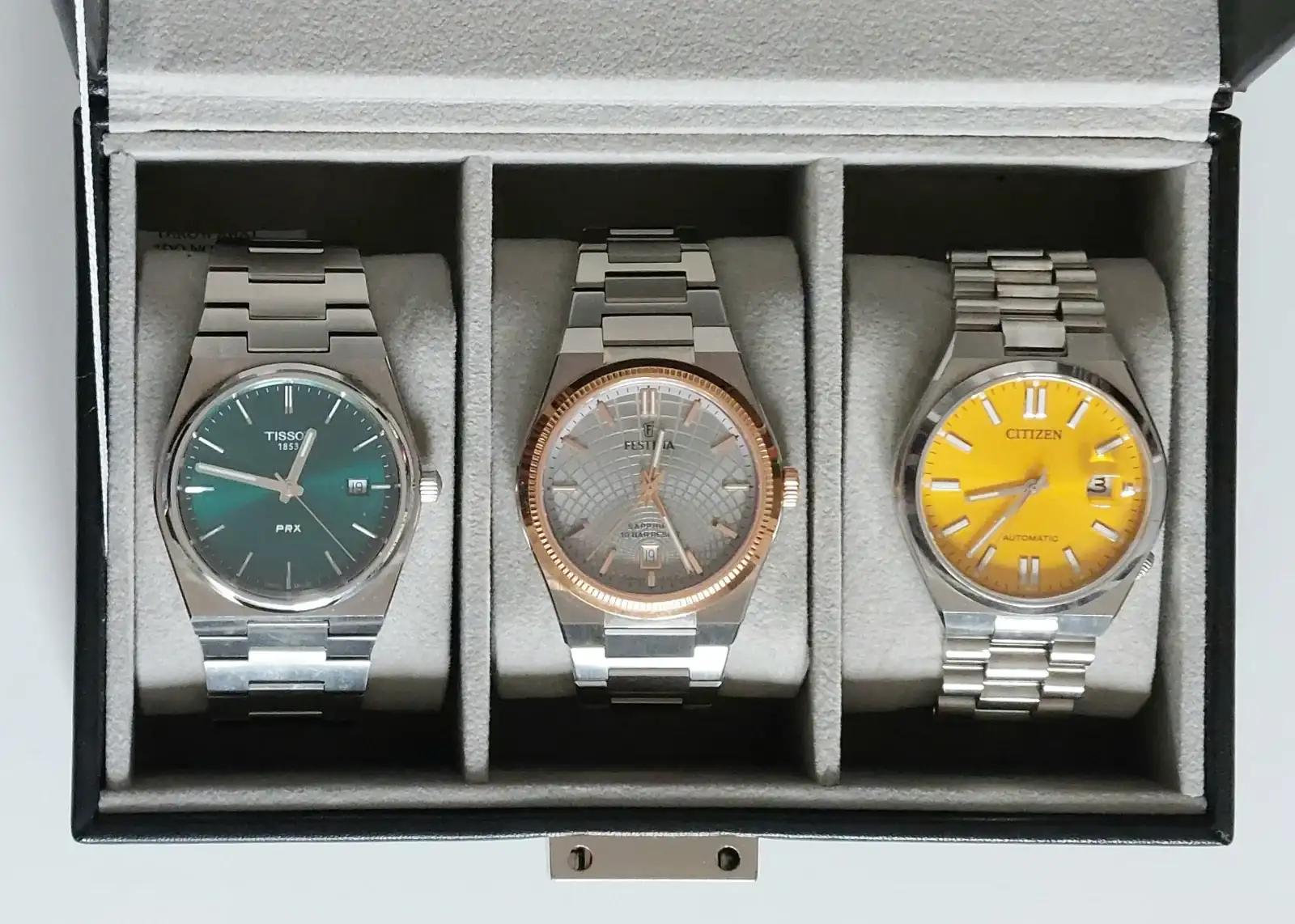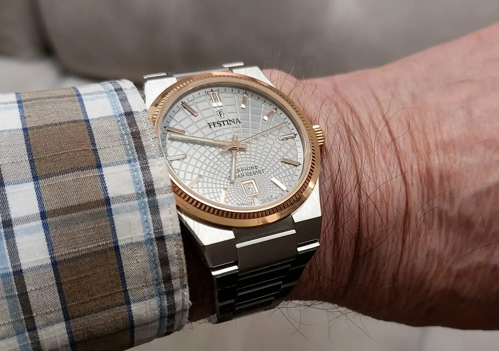 Y es que la verdad es que no me veía portando un reloj de este fabricante y menos aún en un acabado medio cigala, pero fue verlo en vivo en una relojería a pie de calle para elegir un regalo de parte de alguien muy querido y enamorarme a primera vista, como no podía ser de otra manera se vino conmigo puesto en la muñeca y acompañará a sus compañeros de brazalete integrado.