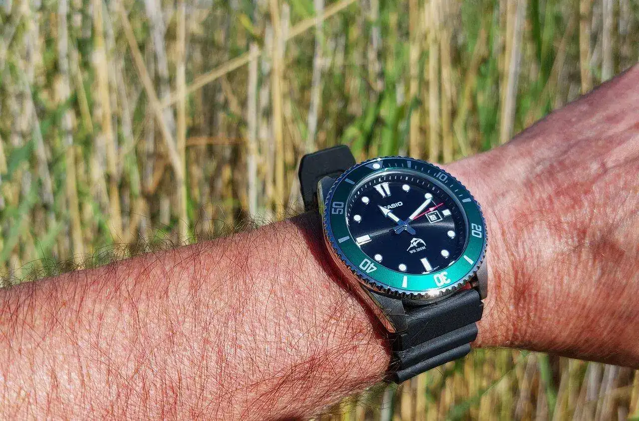 Un reloj modestísimo pero muy bien construido y terminado, es grande sí, pero a su favor la longitud de asas, inferior a otros modelos que tengo como el DS action o el Hydro, además hace ya algún tiempo que paso de tener que renunciar a modelos grandes porque mi muñeca sea muy justita, un buzo es un buzo y además de serlo en mi opinión tiene que parecerlo, aun así es muy cómodo y pesa poco para su tamaño.
