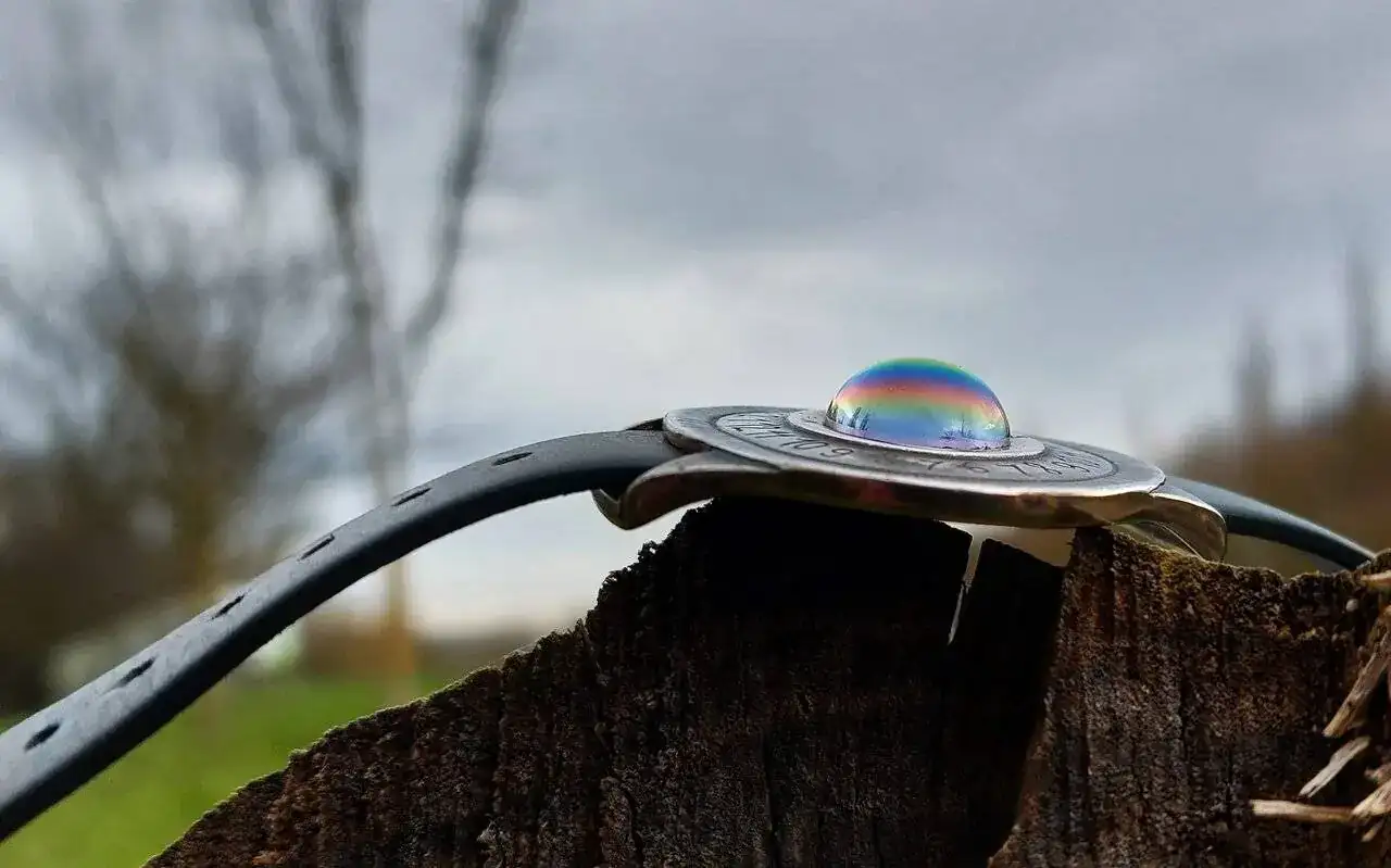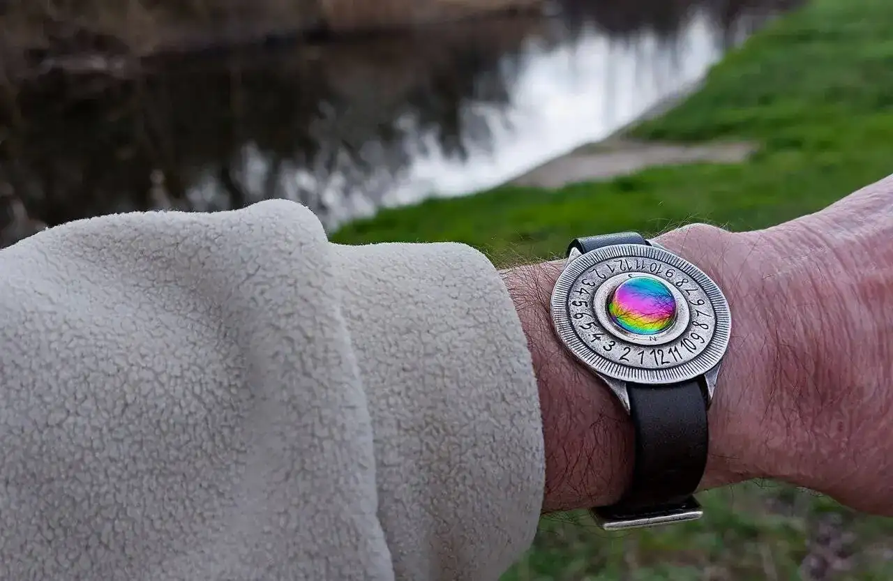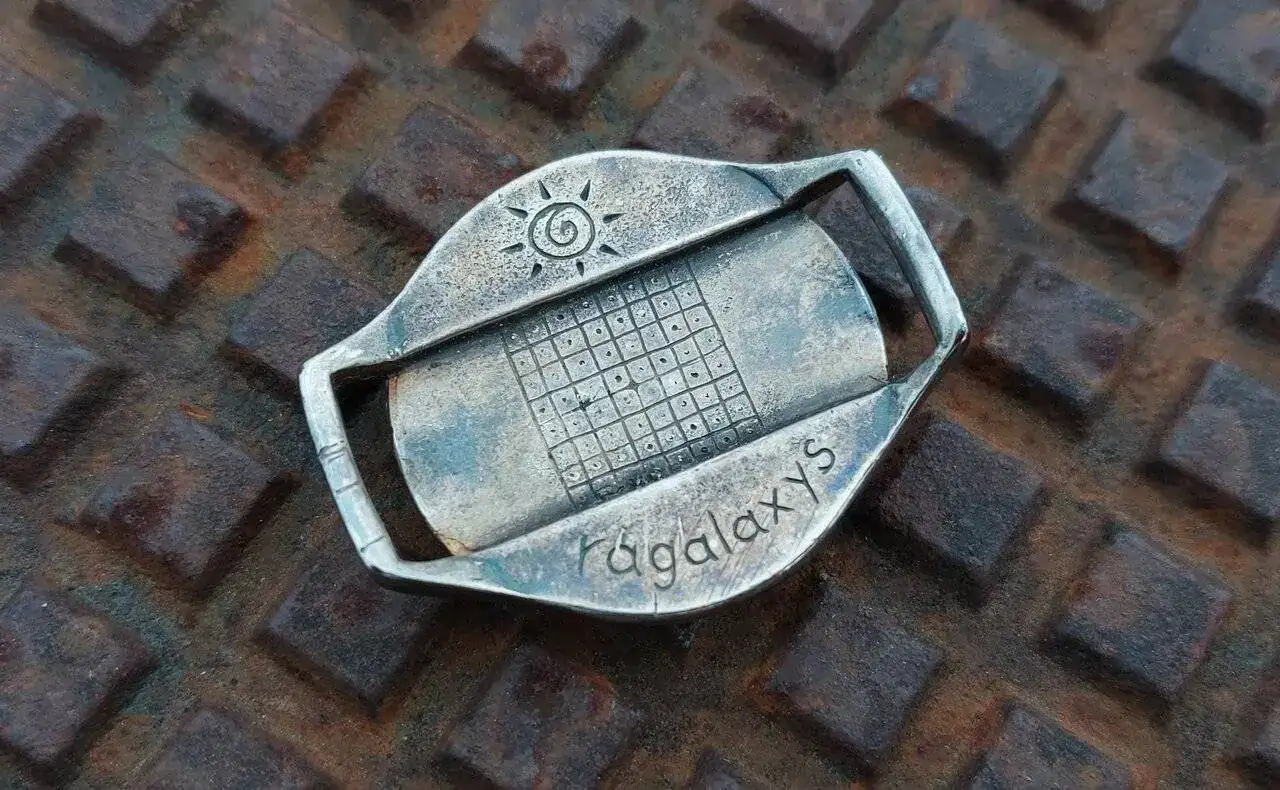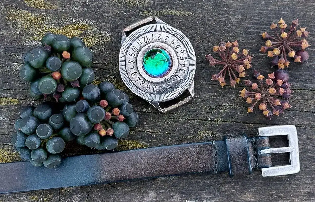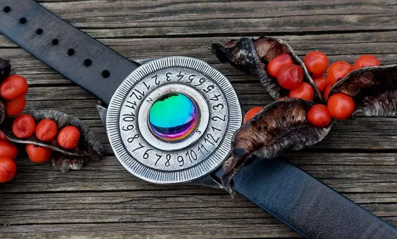 La verdad es que es gracioso y me gusta, tiene un apariencia misteriosa entre cuarto milenio y forjado a fuego, está construido de forma bastante tosca lo que le da otro puntito artesano, no pesa nada y desconozco de que material o aleación puede estar hecho, la correa de cuero y hebilla son muy básicas pero van perfectas con el estilo espartano de la pieza.