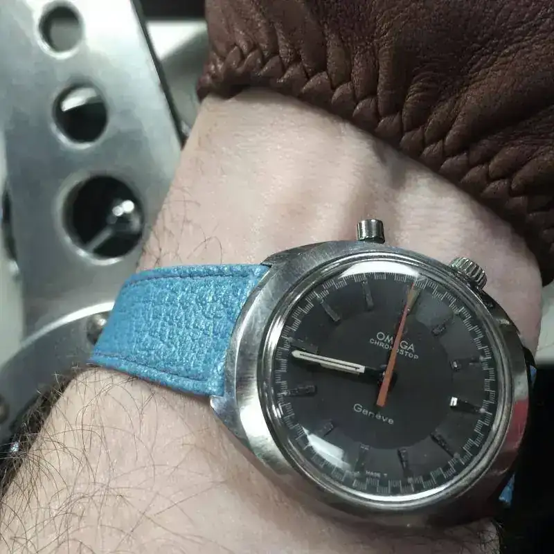 En el caso del Omega Chronostop que se muestra al inicio, tengo entendido que se creo para poder mirar la hora sin tener que mover la mano del volante, le llamaban DRIVER.