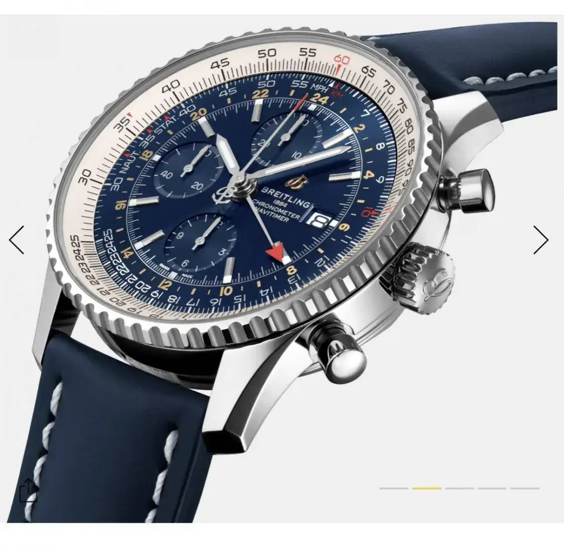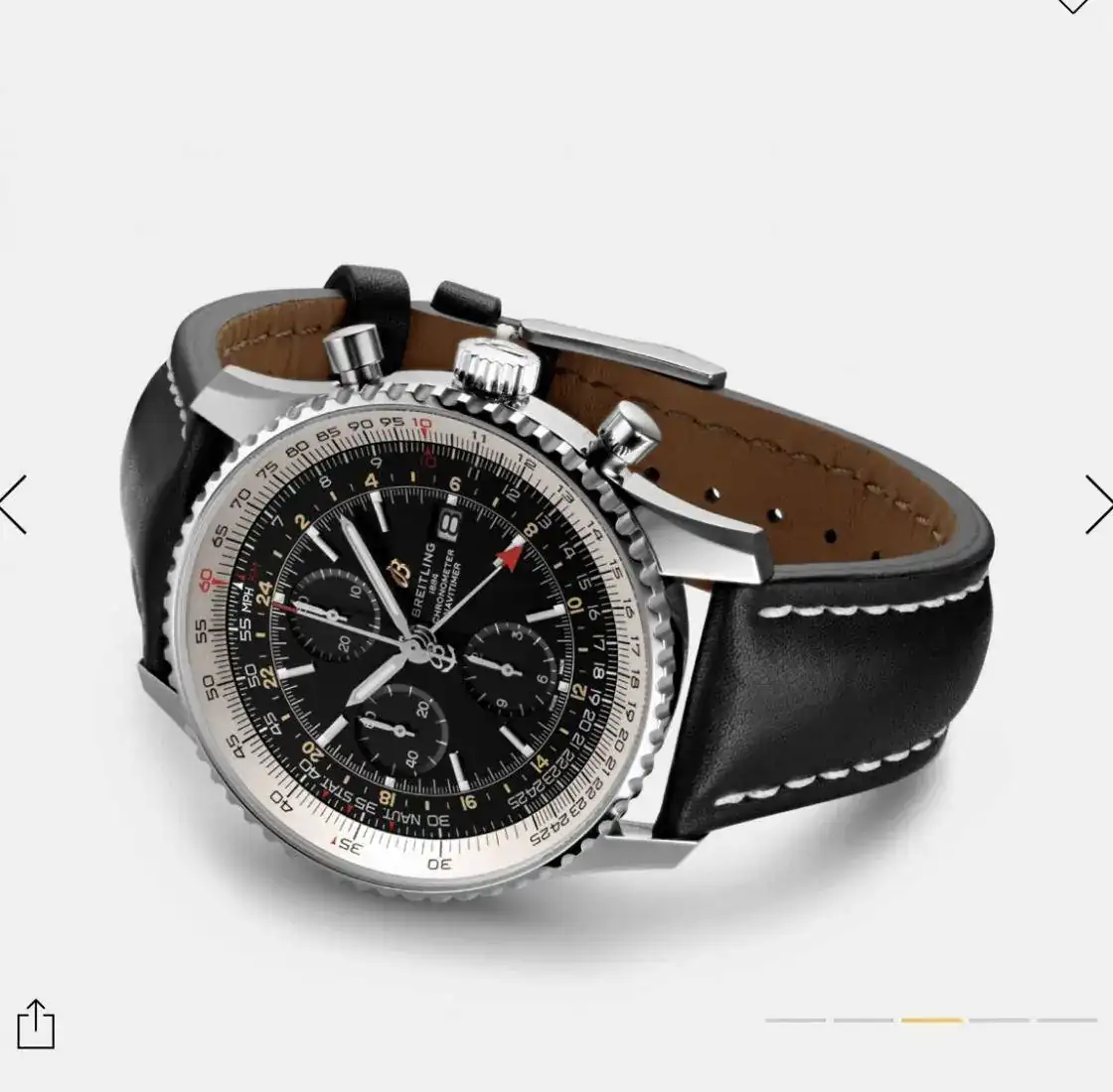 Incluso, existe la posibilidad del Navitimer con función GMT. Esta en color negro o azul.