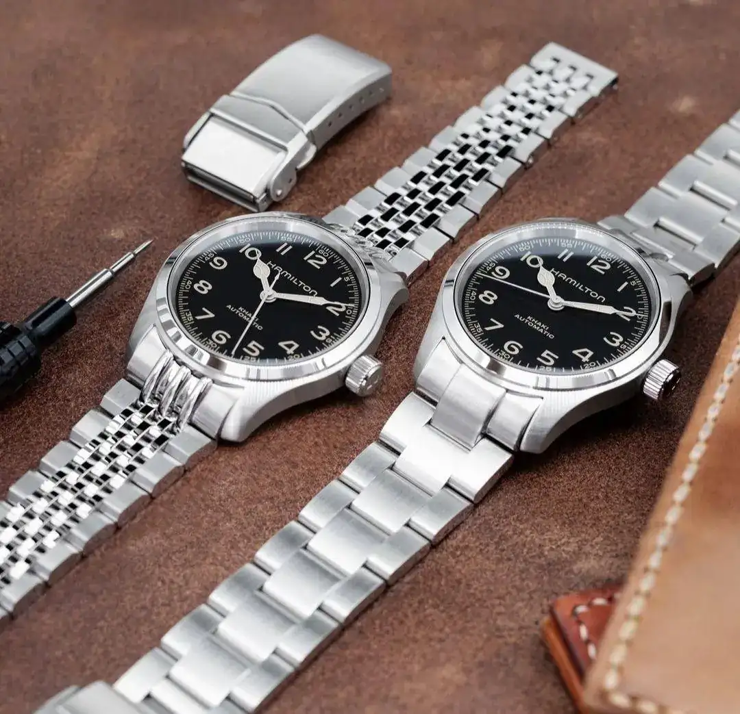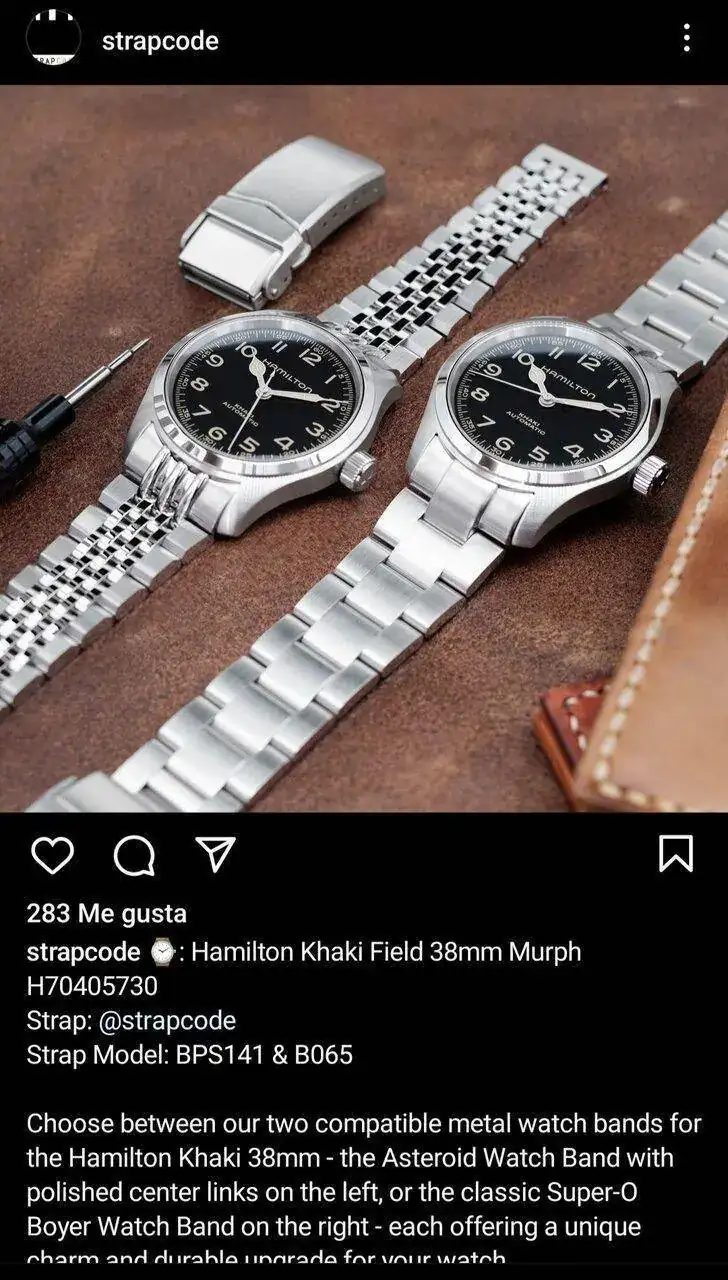 También parece que podría valerle el brazalete original de Hamilton del Khaki 38mm manual, el que es cepillado. Pero a ver cómo se podría probar…