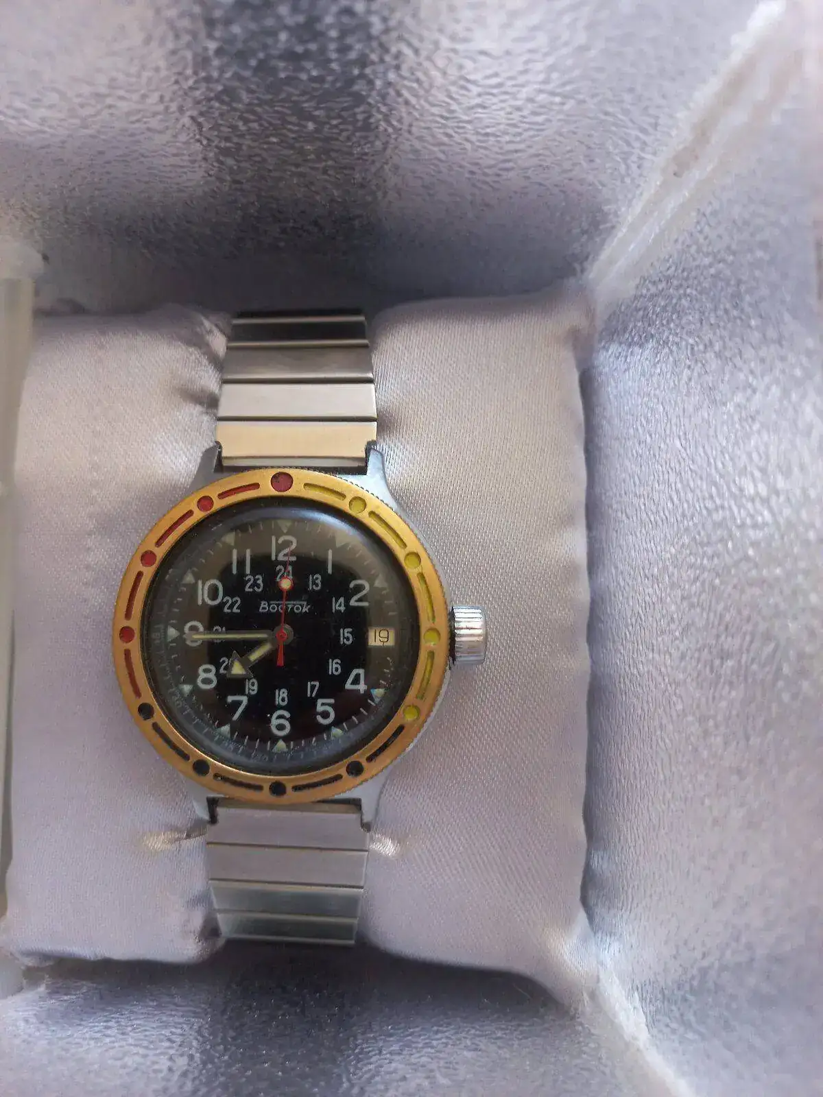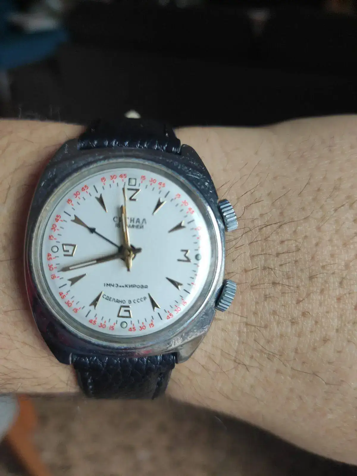 Buenos días, soy nuevo en el foro. Desde 1ue vi los relojes mecánicos rusos me encantaron, sobre todo si tienen las leyendas en cirílico. Éste es mi primer ruso. Seguramente sea un franken, pero me gustó mucho ¿Alguien que conozca bien el modelo podría decirme qué modificaciones tiene? Las coronas seguro que son nuevas y, por lo que he visto en internet, la caja parece que no corresponde. De cualquier modo me gusta mucho, y la marcha va decentemente bien, al igual que la alarma. Espero presentar nuevas adquisiciones pronto. Muchas gracias. Saludos