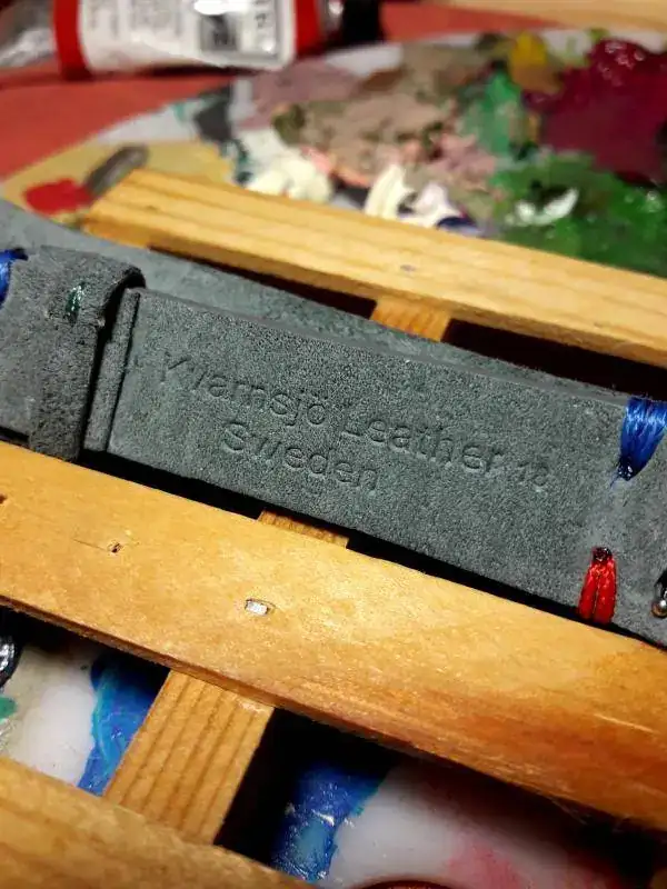 Por cierto, la correa gris, muy bonita, comprada en Aliexpress (China), con cosas escritas en sueco (Suecia) por el interior