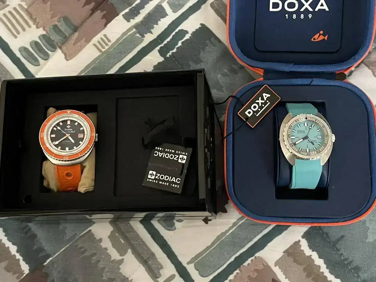 Por fin llegaron en tiempo y forma el Zodiac Super Sea Wolf 68 Saturation edición limitada y el Doxa Sub 300T Conqustador Aquamarina y son realmente espectaculares