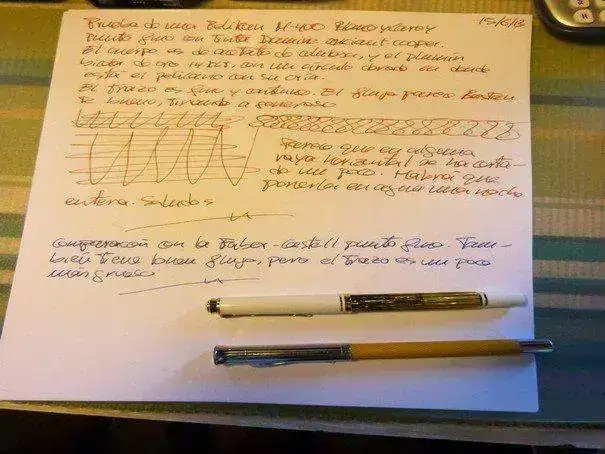 , tengo también una M400 con el barril negro y rayas azules, la utilizo a diario y funciona muy bien, la escritura es fluida y ligera, estoy encantado. Si no te convence el plumín puedes pedir que te lo cambien a otro grosor, tengo una M215 que venía con un plumín medio y pedí que lo cambiarán a fino y no pusieron ninguna pega en la tienda, es una facilidad que creo que te da el fabricante. Enhorabuena y a disfrutar de ella por muchos años.