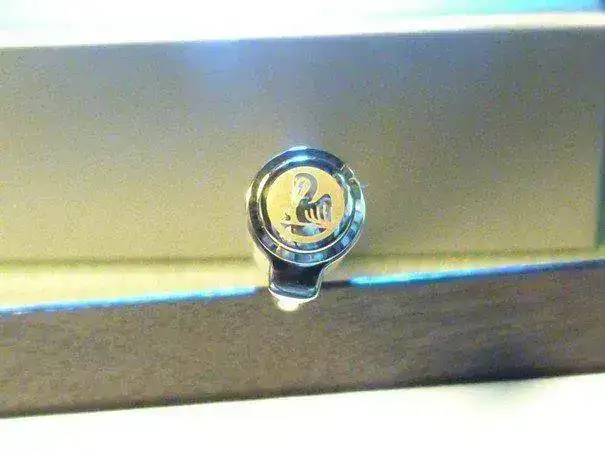 Como he dicho antes, es de oro de 14 Klt bicolor, y tiene el detalle de tener en un círculo dorado el motivo del pajarraco.