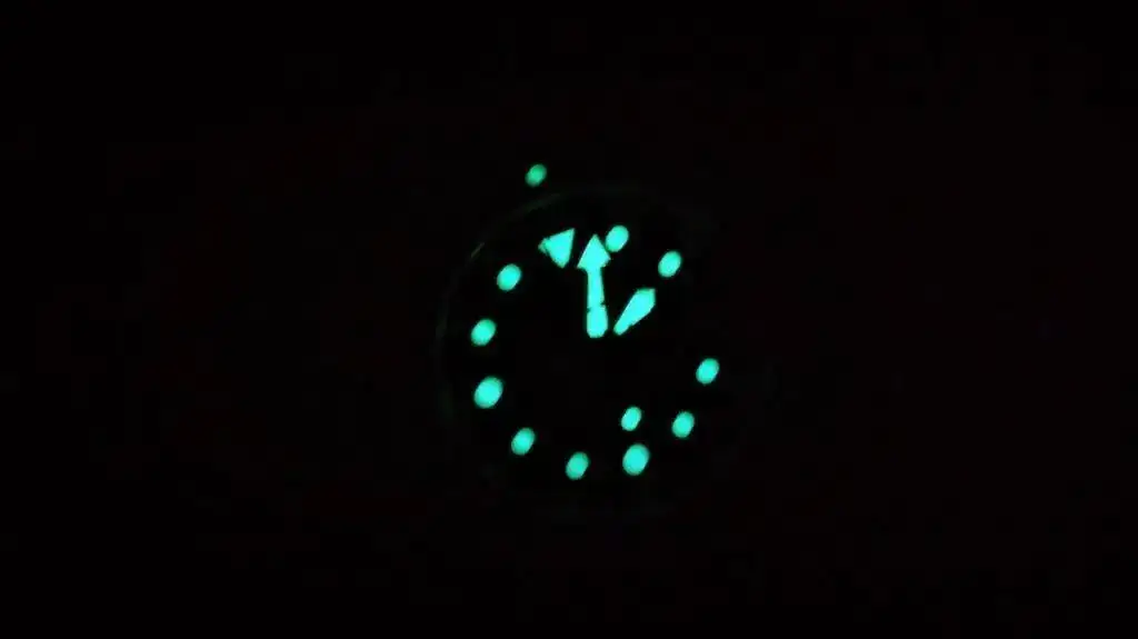 En la esfera(negro piano) lleva la literatura de professional y 300m, doble datario, en este caso kangi e inglés y día del mes. Los índices pintados de lume muy bien aplicado, brillan perfectamente en la oscuridad, como no podía ser menos en el caso de Seiko.