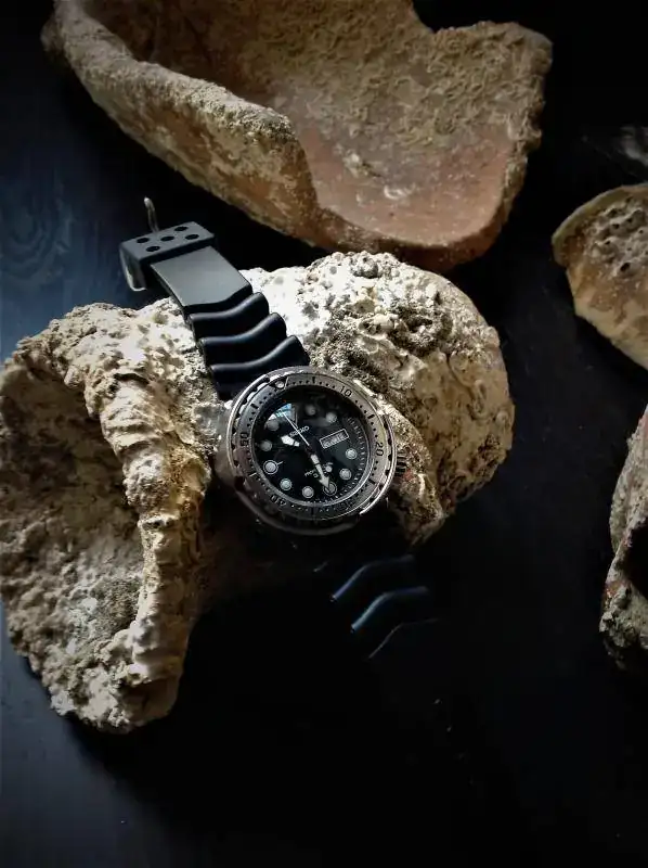 Mucho tiempo hace que perseguía este tuna de cuarzo y al fin afortunadamente puedo lucirlo. Siempre me han gustado los diver y concretamente los de seiko, tengo el sumo, el 007, el 009. Los utilizo como muchos sabéis para lo que son, es decir, disfrutarlos del mar y en el mar, ya que tengo el privilegio de vivir en la isla de Mallorca. Buceo, snorkel, pesca sub... Ya os he enseñado muchas fotos de mis actividades acuáticas con mis relojes debajo el agua. Pero me apetecía un buen diver de cuarzo, uno que fuese diferente, que tuviese su propia línea de diseño (algo difícil de ver y encontrar en la inmensa mayoría de relojes hoy en día) y así fue que un buen día me encapriché de los Tuna. Si queréis leer un poco sobre la historia de estos magníficos divers (si no voy equivocado, Seiko hizo más de 20 patentes, sólo en la creación de los Tuna). También aquí en el foro los compañeros han escrito mucha literatura sobre esta línea de Seiko.
