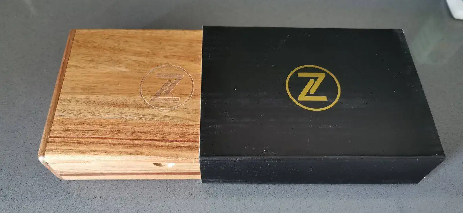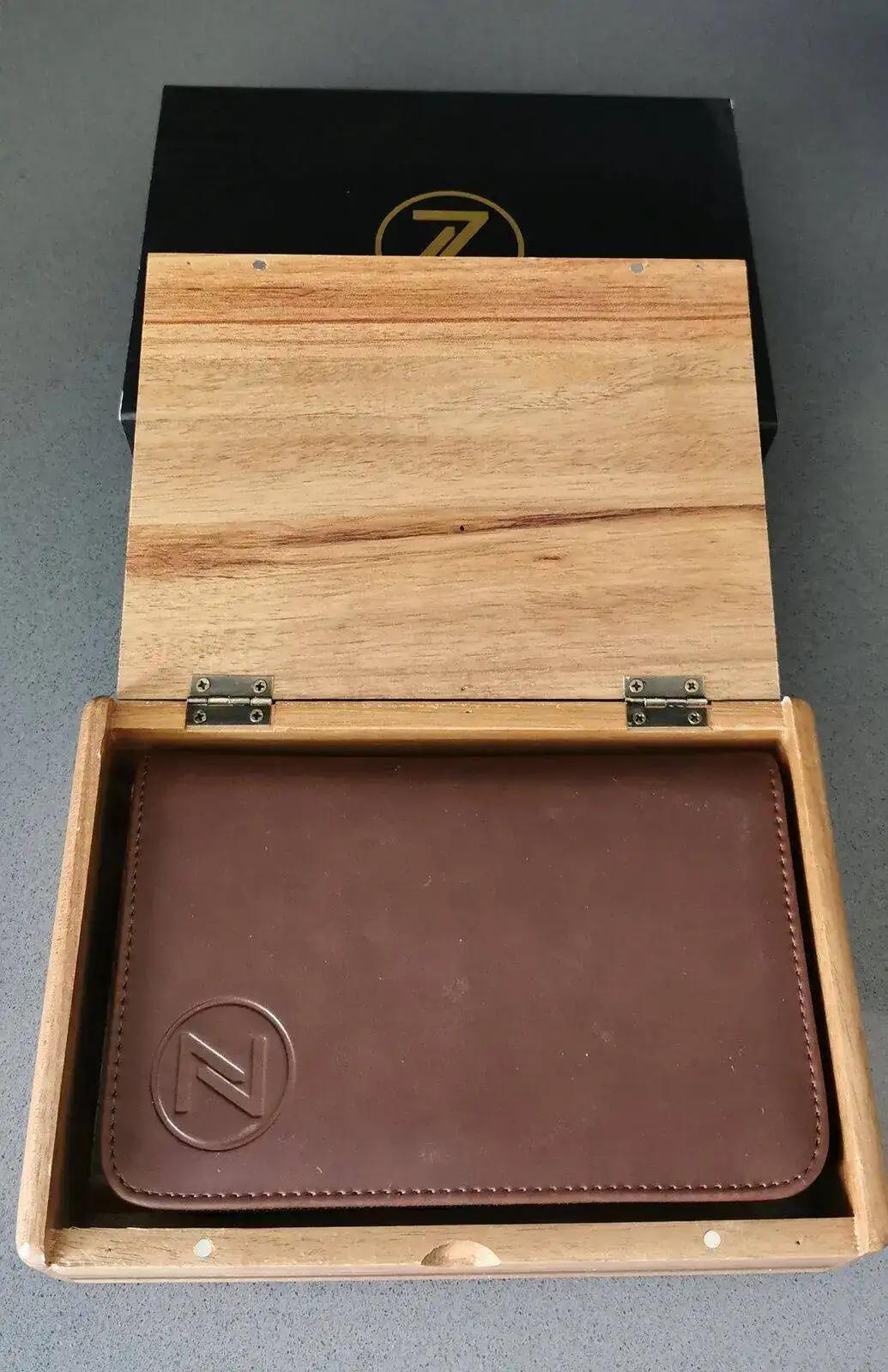 Cajita de madera con imanes y logo de la marca, buen detalle