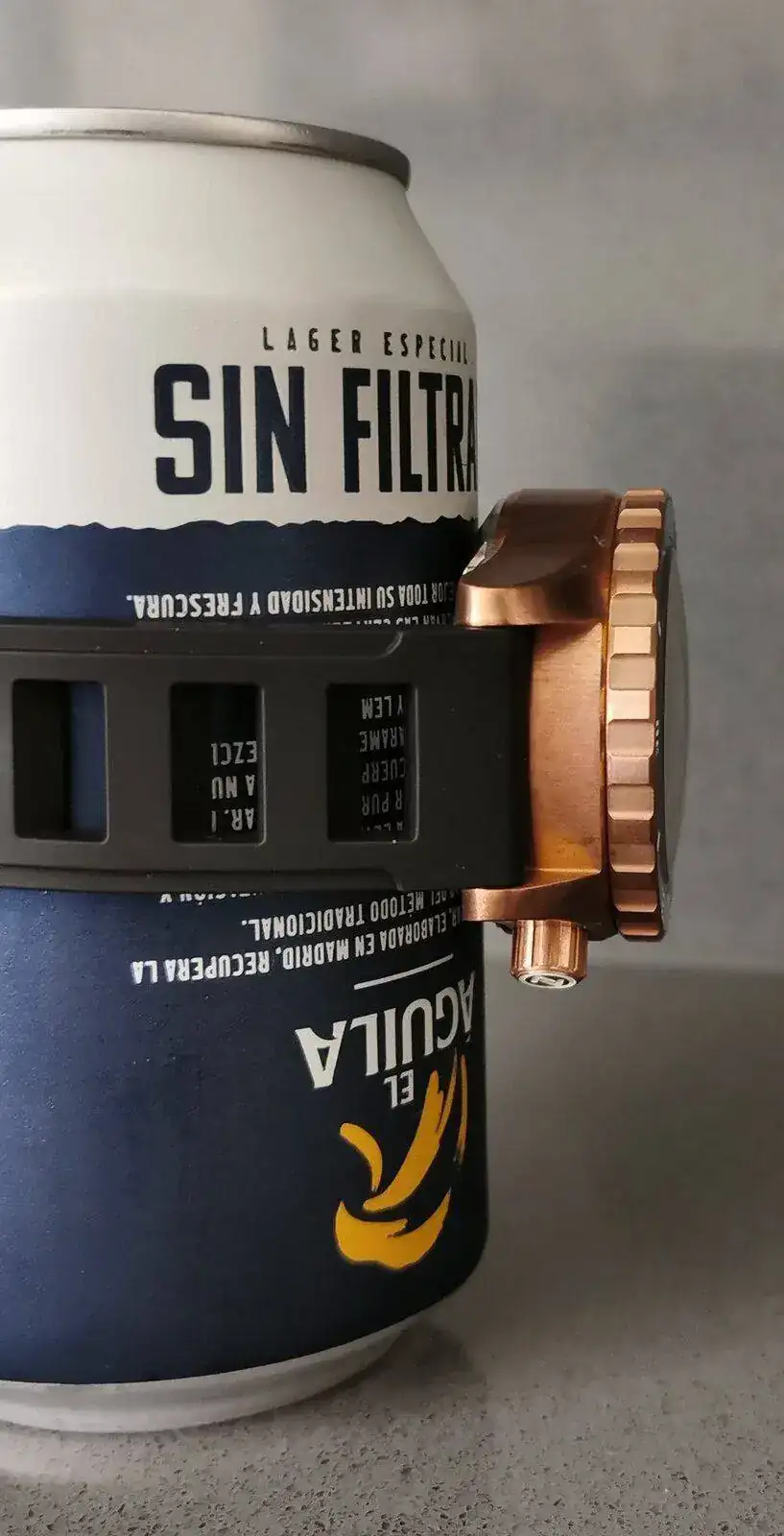 Justico justico, abraza una lata de cerveza en el último agujero de la correa de Isofrane