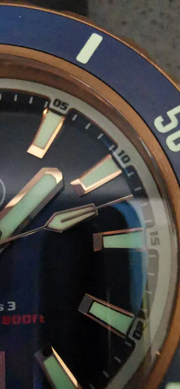 Muy buenos acabados en general, aunque el modo macro del móvil deja que desear. De todas formas no hay que volverse locos con las espectativas tampoco, que es un reloj que en un principio se vendía en 550$ y ahora está en 699. Me flipa la combinación bronce/azul/oro rosa.