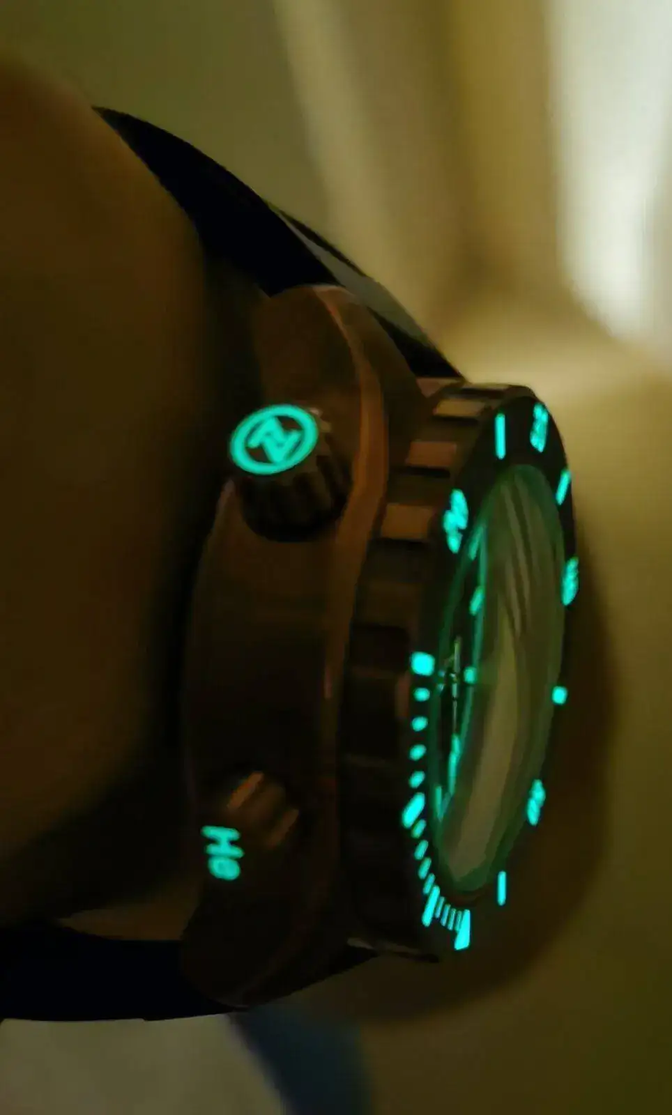 Bueno pues este se queda conmigo. Me parece una PASADA, estoy súper contento con la compra pese a todas mis reticencias. Está más que claro que no es un reloj que pueda llevar a todas partes, ya sólo por lo exagerado de las dimensiones llama mucho la atención y desde luego no pega con todo, pero no paro de mirarlo embobado. El diseño y la combinación de colores me parecen acertadísimos, el lumen, una locura, los acabados a la altura o incluso un poco por encima. A ver como envejece el bronce, que estando en madrid y siendo yo más bien de secano, imagino que tardará, pero vamos en el momento que me canse lo devuelvo al estado original y volvemos a empezar. Además es súper legible y para colmo a mi mujer le ha gustado mucho