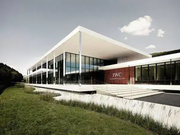 21 meses han sido suficientes para erigir el nuevo Manufakturzentrum de IWC Schaffhausen a las afueras de la ciudad suiza. A medida que nos aproximamos, se manifiesta claramente que la firma relojera también ha querido celebrar su 150 aniversario con un hito arquitectónico. Los paneles de cristal con perfiles negros contrastan en los aleros salientes en blanco del edificio.