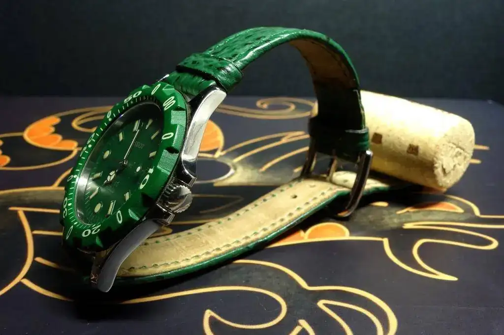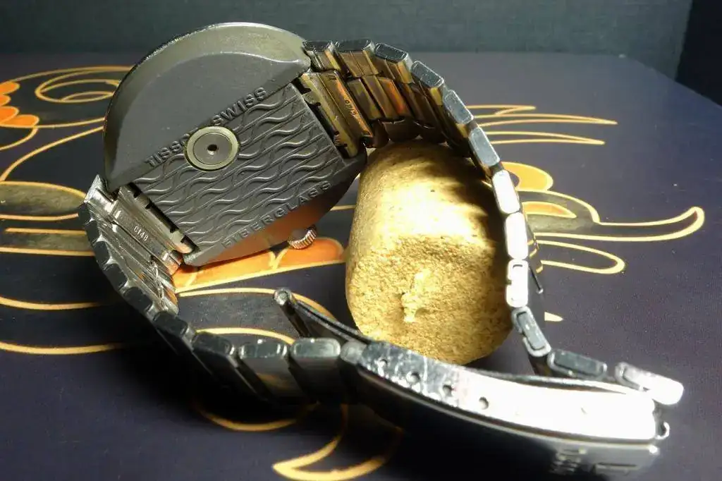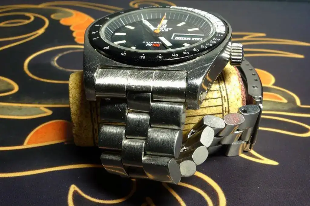 Llevaba tiempo detrás de un Sideral, esos relojes con la caja de fibra de vidrio que se supone que duraba para siempre... cosas de Tissot, siempre probando cosas. El caso es que compré este, que sin ser espectacular tiene un aspecto más que aceptable, aunque finalmente el armis no era lo que parecía. No es que le quede mal, es que resultó ser un engendro entre Citizen y un cierre Tissot "machihembrao". El vendedor me juró que no se había percatado y que me mandaba uno de verdad... en cuanto lo pillara.