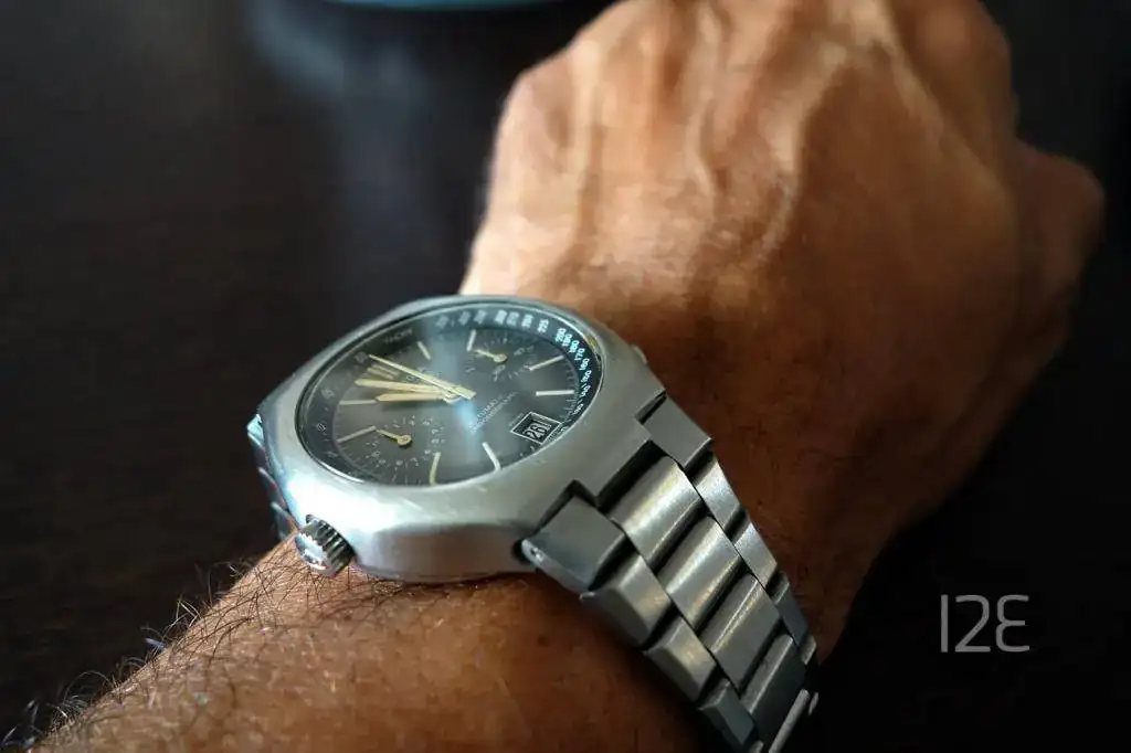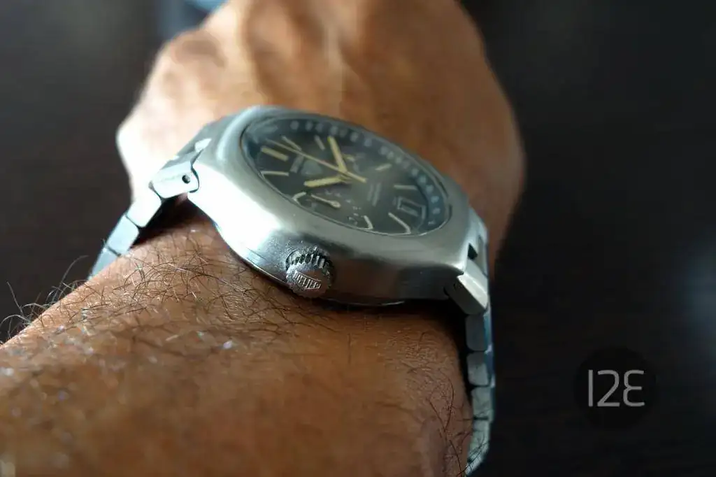 ) aquí van unas cuantas, que me han permitido volver a extasiarme con él. No son "de estudio", pero creo que valdrán. Sigo impresionado por el estado general que, sin ser NOS, ha conservado prácticamente todo. Desde la esfera a las agujas, pasando por un conjunto caja/ brazalete que me hace pensar que nunca fue pulido.