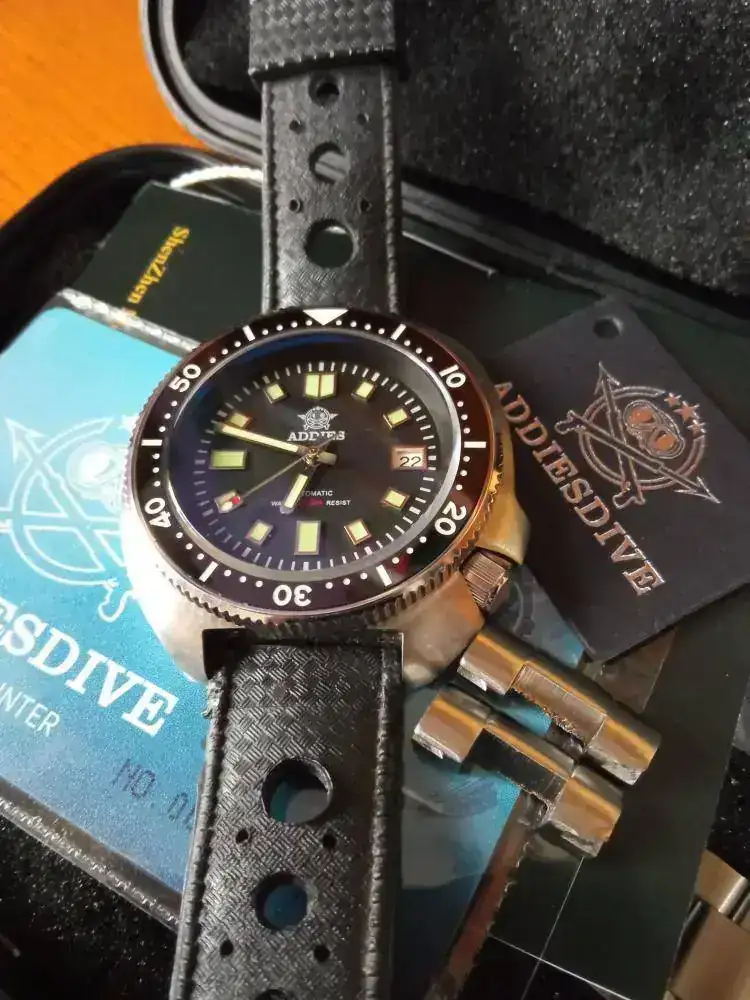 Yo aún lo tengo en la cesta, me acaban de llegar dos y tengo que esperar un poquitín, por cierto el que tengo en la lista de espera es un Addies, que no se si tendrá algo que ver con el popular Steeldive. Gracias por compartir y disfruta de ese reloj del que todos hablan maravillas