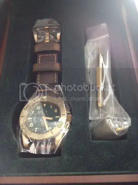 Bien embalado, con caja interior de madera, sencilla pero correcta. El reloj trae montada una correa de piel de buena calidad con bucle de bronce y se incluye una nato, más herramienta para el cambio. En la mano, la pieza transmite calidad y buenos acabados.