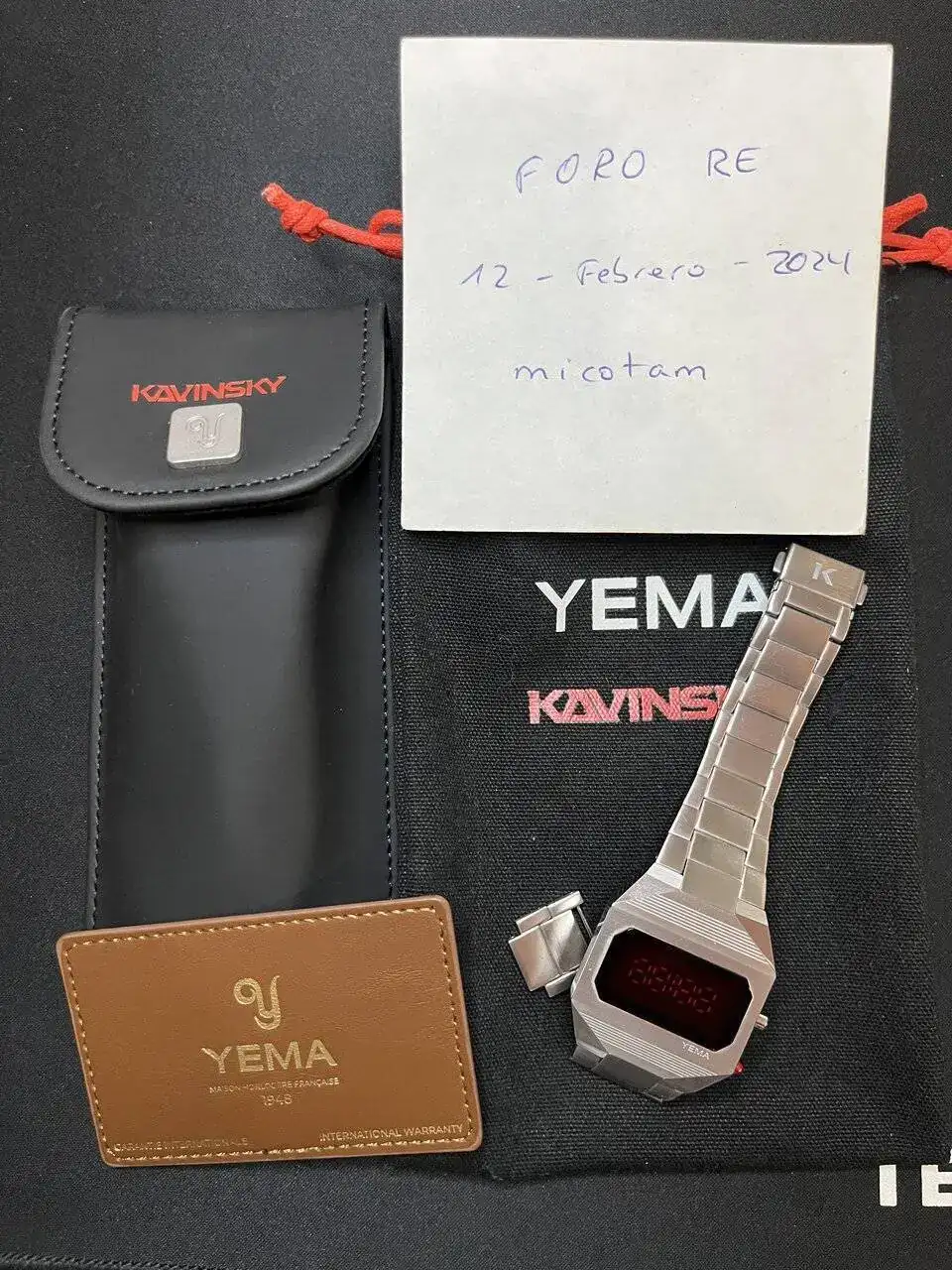 La pieza en cuestión, es un Yema LED Kavinsky edición limitada a 3333 unidades. El reloj tiene 2 puestas, literal, desde que se le ajustó el brazalete de cuando estaba sin estrenar.