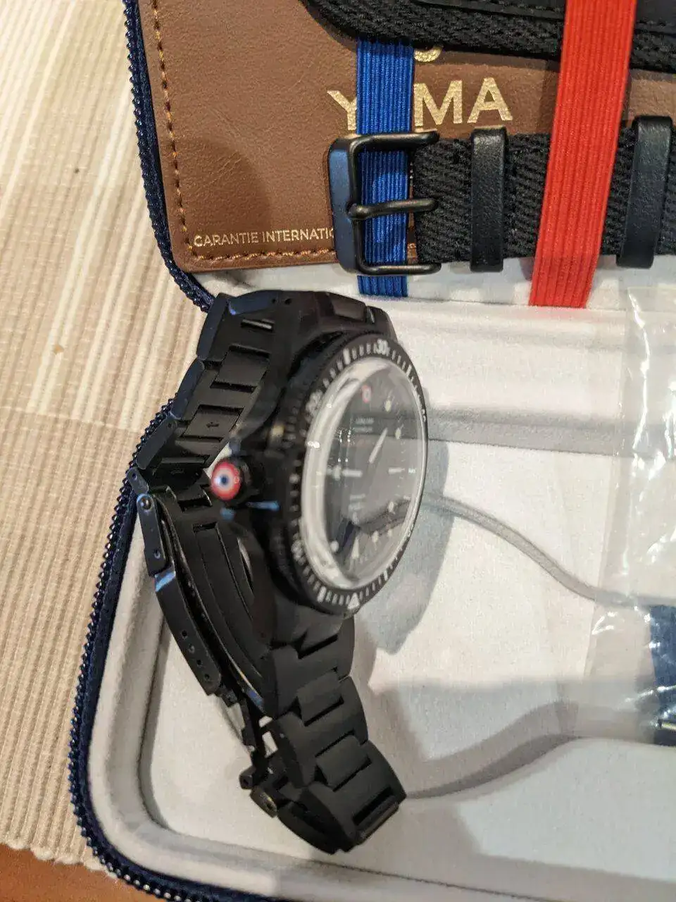 Vendo este conocido Superman de la marca francesa Yema en una espectacular edición limitada tributo a la armada del aire francesa y "black edition". El reloj está en magnífico estado debido al poco uso que le he dado.