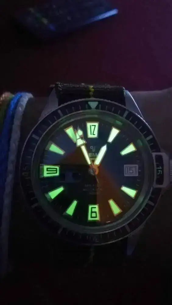 Se trata del Yema Superman Heritage 1963 Edicion limitada. Ahoa mismo no está disponible y yo lo ofrezco por bastante menos de lo que vale, con casi toda su garantia por delante. No he tenido nada de tiempo para hcer fotos decentes así que pongo lo que ya tenia y alguna más. El estado del reloj es impecable. Al ser todo cepillado no tiene marcas visibles y el armis solo ha sido ajustado, pero no usado. De hecho conserva el plástico del cierre y de la parte trasera del reloj. Repito, está perfecto. Cualquier cosa aceptaria el sistema cabanillas (si no fuera lo que describo aqui).
