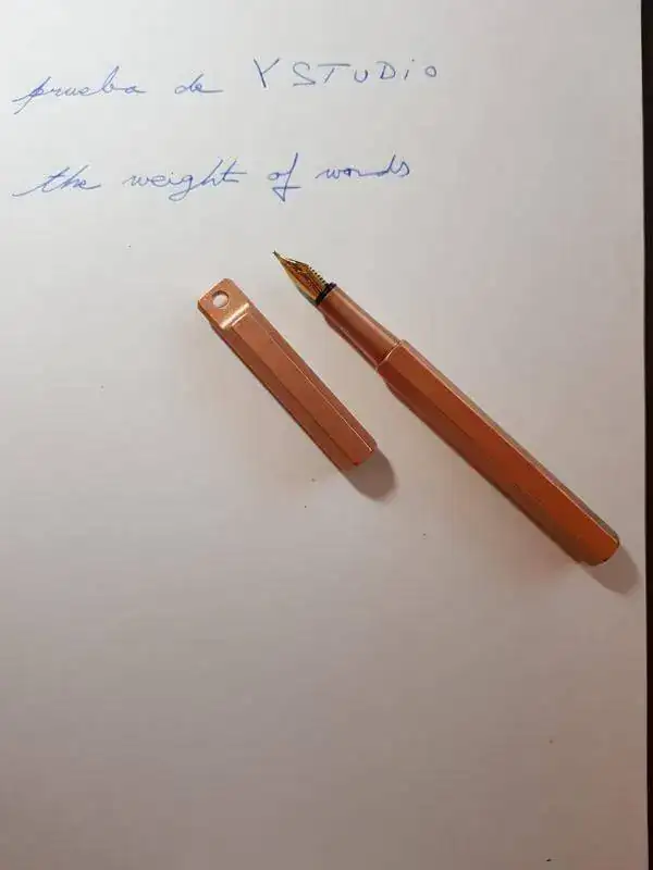 Os dejo aquí unas fotos de la recién estrenada pluma de los taiwaneses Ystudio (https://www.ystudiostyle.com/). El plumín es alemán, la pluma pesa bastante y la verdad que me está gustando cómo escribe.