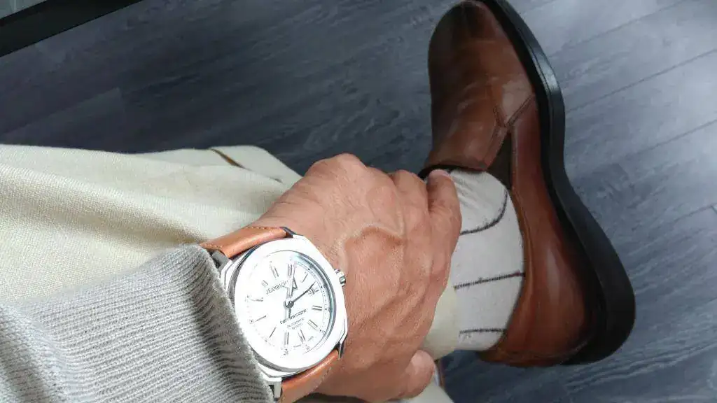 Buenas tardes, buscando refloto este hilo, aquí esperando coger el Ave presento mis zapatos de hoy reloj de hoy, todo cuidadosamente desvirtuado con unos calcetines rusos.