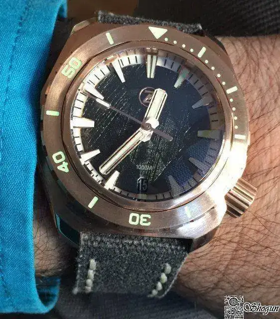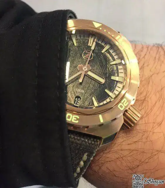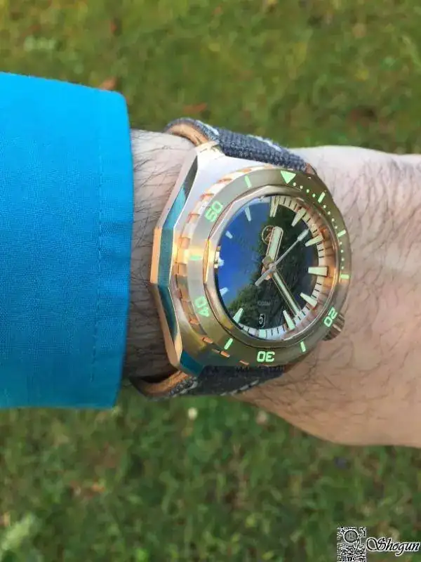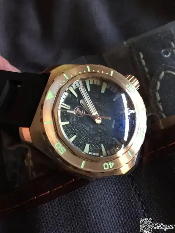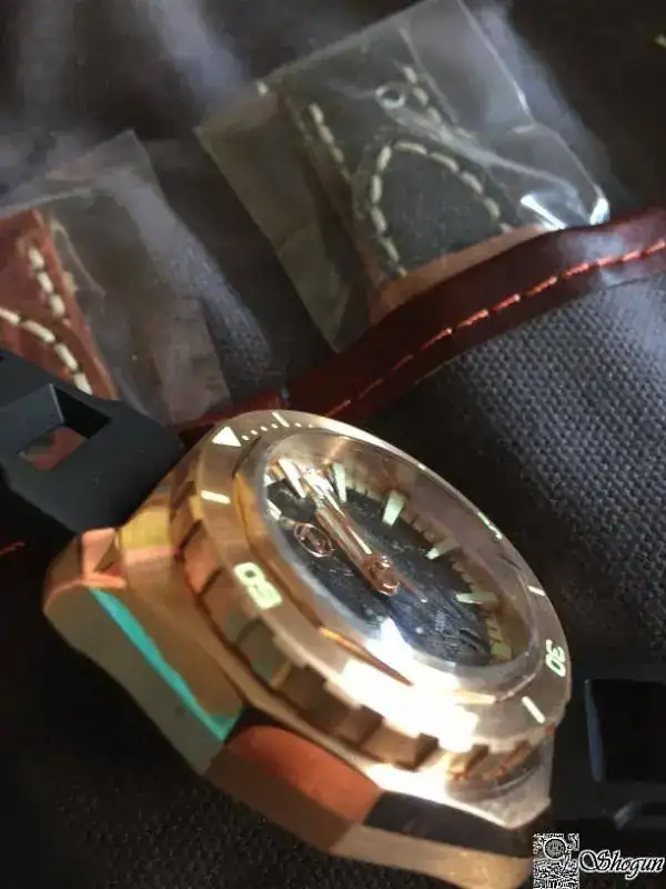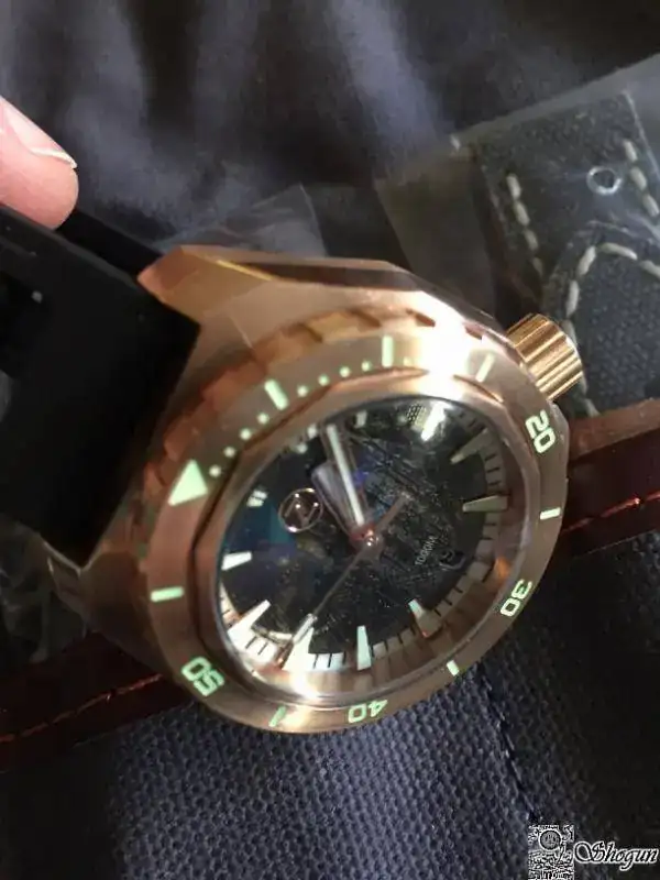 Cuando te llega se nota la caja trabajada con partes a brillo y partes mate, el bronce muy limpito, como veréis en las fotos después de sólo unos días se torna a un poco más oscura y ya le empieza a salir esa patina característica de estos relojes que personalmente me encanta.