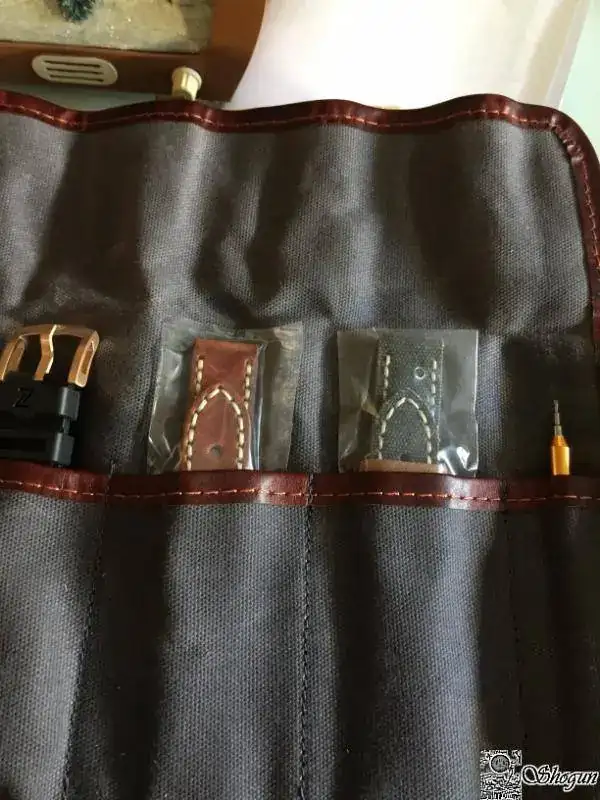 Tiene tres correas, para mí la que le he puesto la más bonita y como curiosidad la tarjeta de garantía es de bronce.