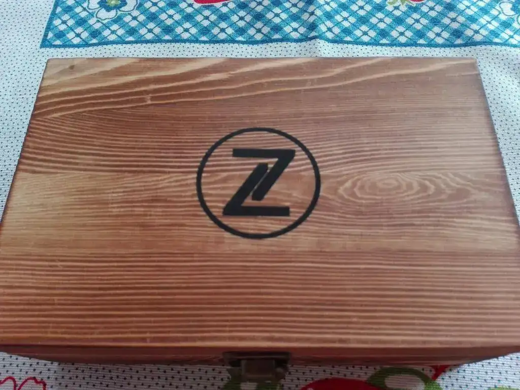 La caja de presentación es de madera con aspecto envejecido y cierre de latón. Muy conseguida, me gusta.